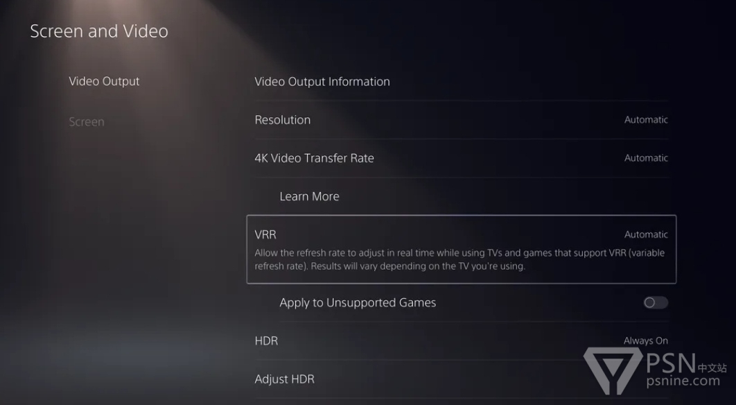 对于未更新VRR支持的游戏,PS5也提供强制打开VRR的选项,以期改善某些游戏的图形表现。