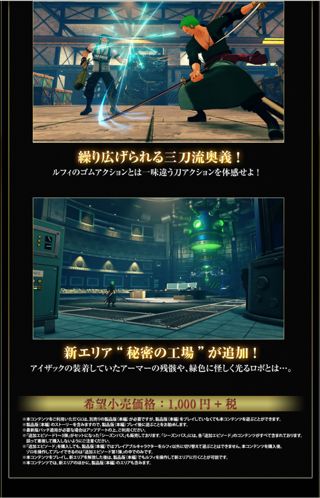 万代南梦宫于3月14日发售的开放世界动作游戏《海贼王 寻秘世界》,将要出炉第一弹DLC。