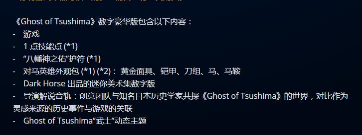 亚洲版只有四种版本《Ghost of Tsushima》藍光光碟普通版: HK$468《Ghost of Tsushima》藍光光碟珍藏版:HK$1,378《Ghost of Tsushima》普通下載版:HK$468《Ghost of Tsushima》豪華下載版:HK$568