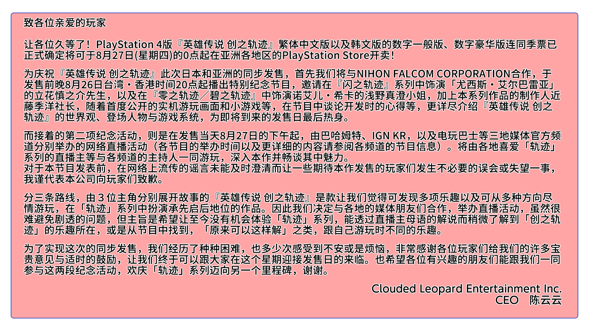 ■ 8月27日0:00起将开放《创之轨迹》数位版开始下载。