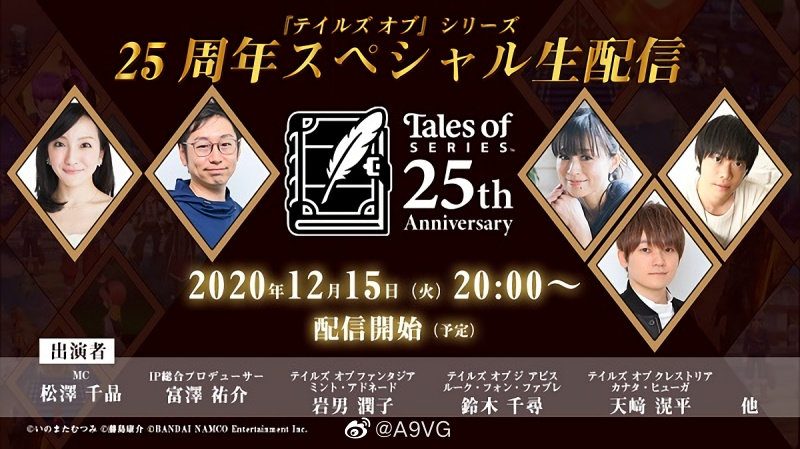 万代南梦宫此前预告过的「传说系列25周年纪念节目」确定将于12月15日北京时间19点放送,节目上会由参与过《传说系列》作品开发的制作人讲述游戏开发秘闻与轶事,此外还会公开手游、纪念活动及周年周边相关的最新情报。