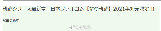 速报消息,「轨迹」系列新作为《黎之轨迹》,预定于2021年发售。