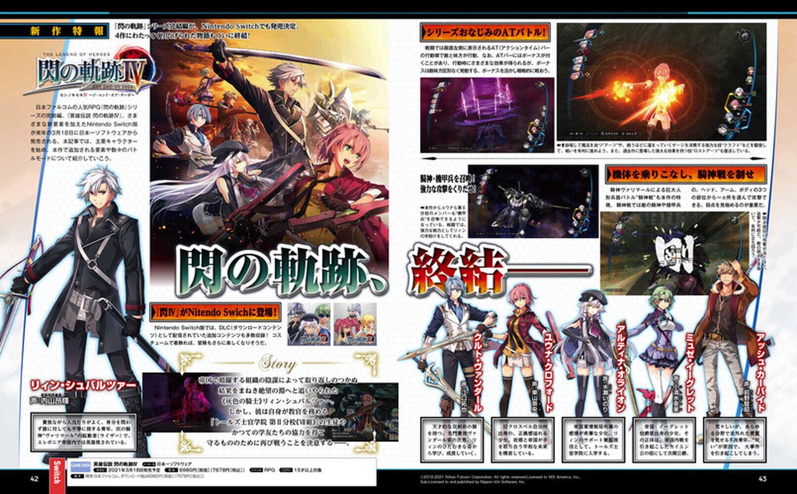 Switch版《英雄传说 闪之轨迹4》确认将于2021年3月18日发售。