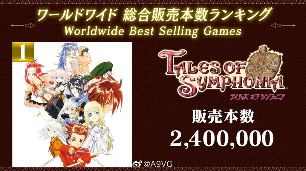 《传说》系列公布系列历代作品销量排行榜,前三名还公布了销量。详细可见下方: