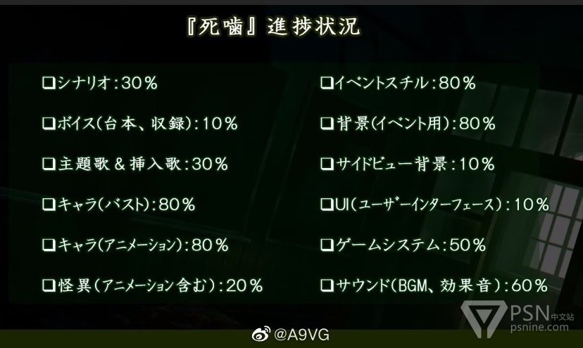 心灵恐怖ADV《死印》系列新作《死噛》将于2022 年 3 月 24 日登录PS4和Switch。具体开发进度请见图3.