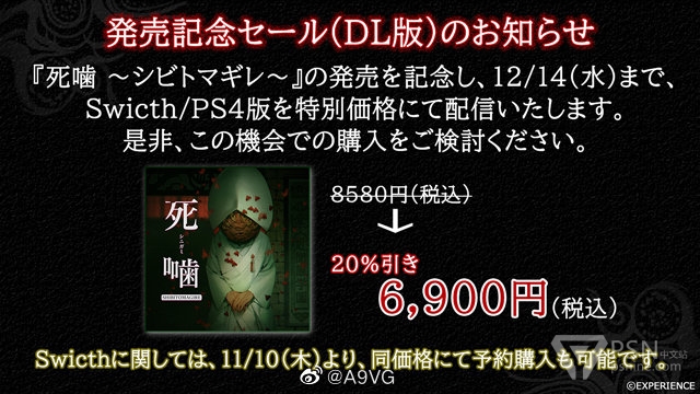 心灵恐怖ADV《死印》系列新作《死噛》为纪念发售,在12月14日前购入下载版可享受20%的首发优惠,原价8580日元,折后6900日元,本作预定于2022年12月1日发售,登陆PS4/Switch平台。