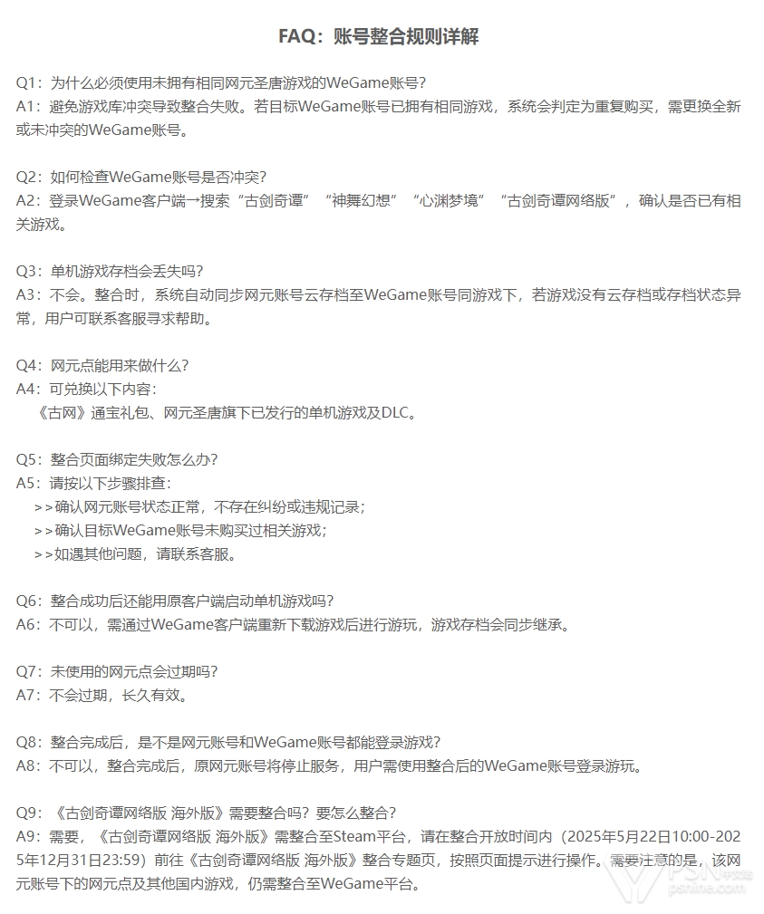 本次账号整合仅涉及网元圣唐官方账号体系,Steam、WeGame等全球合作平台的账号体系不变。本次账号整合后仍由网元圣唐提供游戏运营服务,不涉及运营主体的变更。