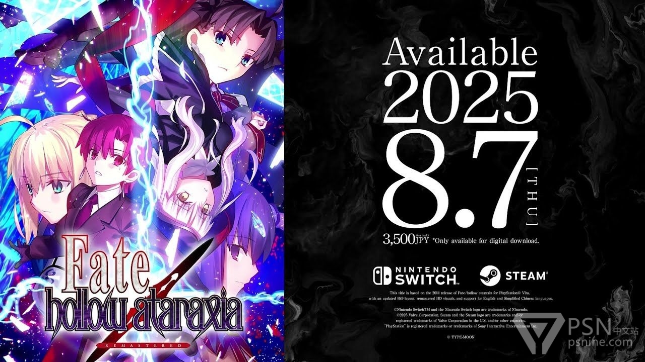 《Fate/hollow ataraxia REMASTERED》确认将于8月7日发售,登陆Switch/Steam平台。 此次重制以2014年发售的《Fate/hollow ataraxia》版本为基础,新增简体中文等多语言支持,并通过全高清画质与丰富演出效果,为作品带来全新魅力。