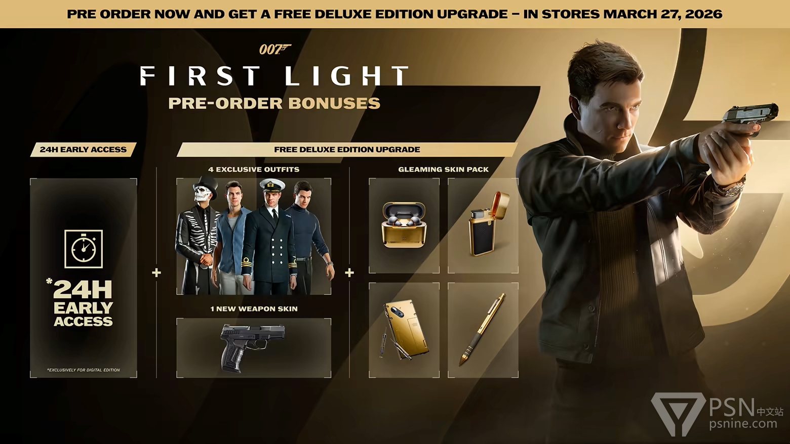 《007 First Light》将于2026年3月27日发售,登陆PS5。游戏支持简体中文&繁体中文。