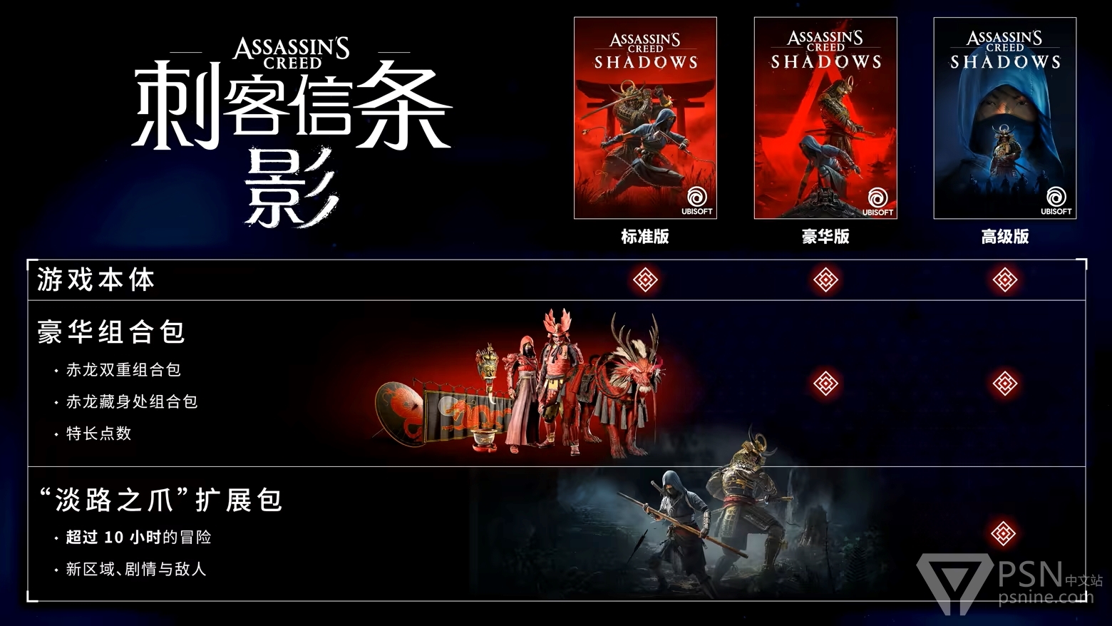 「淡路之爪」免费提供给所有预购了《刺客信条:影》的玩家;未预购的玩家可单独购买该DLC,本作今天新推出的高级版也包括该DLC。