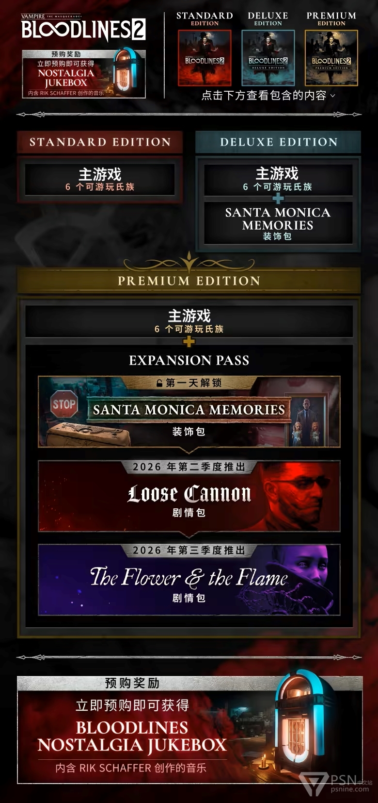 《吸血鬼:避世血族2》此前开启预购时,「托芮朵」和「勒森魃」为高级版独占内容,购买标准版和豪华版的玩家无法游玩到这两个氏族。