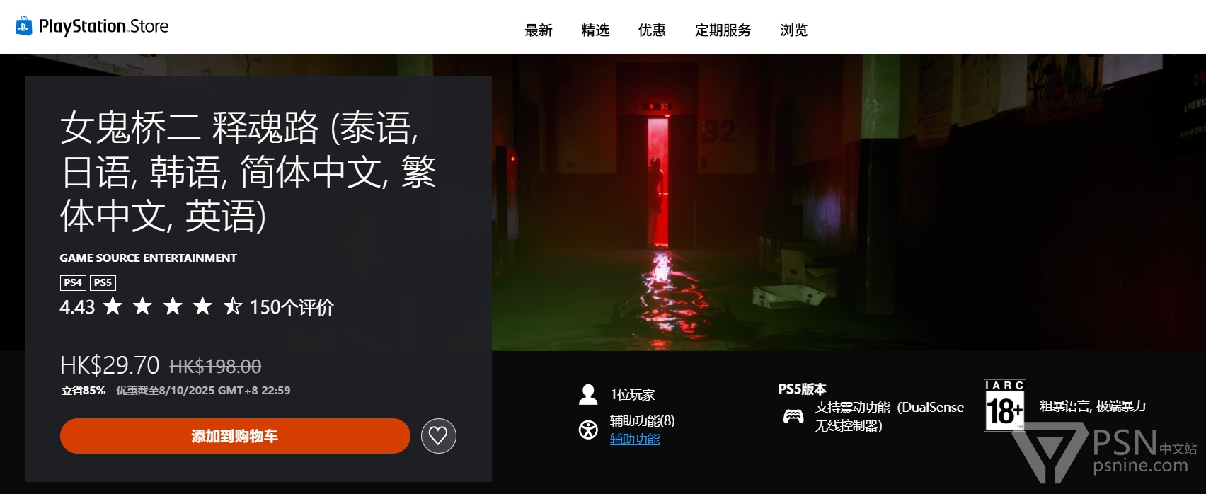 《女鬼桥2:释魂路》2024年10月登录PS4和PS5,从没打过折。我上个月原价200块港币买的还打了白金,结果今天突然打折而且直接一折,我艹了,人麻了都。