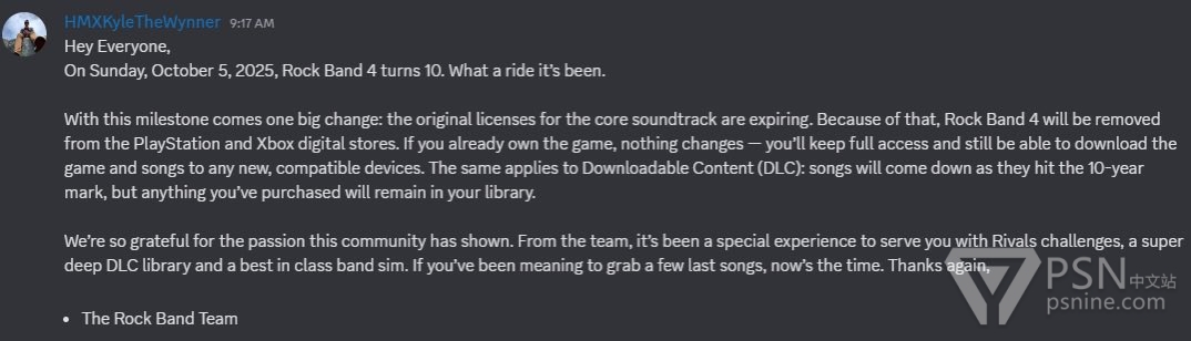 《摇滚乐队4》将于2025年10月5日下架停售,已购买游戏的玩家在停售后仍可下载游玩。