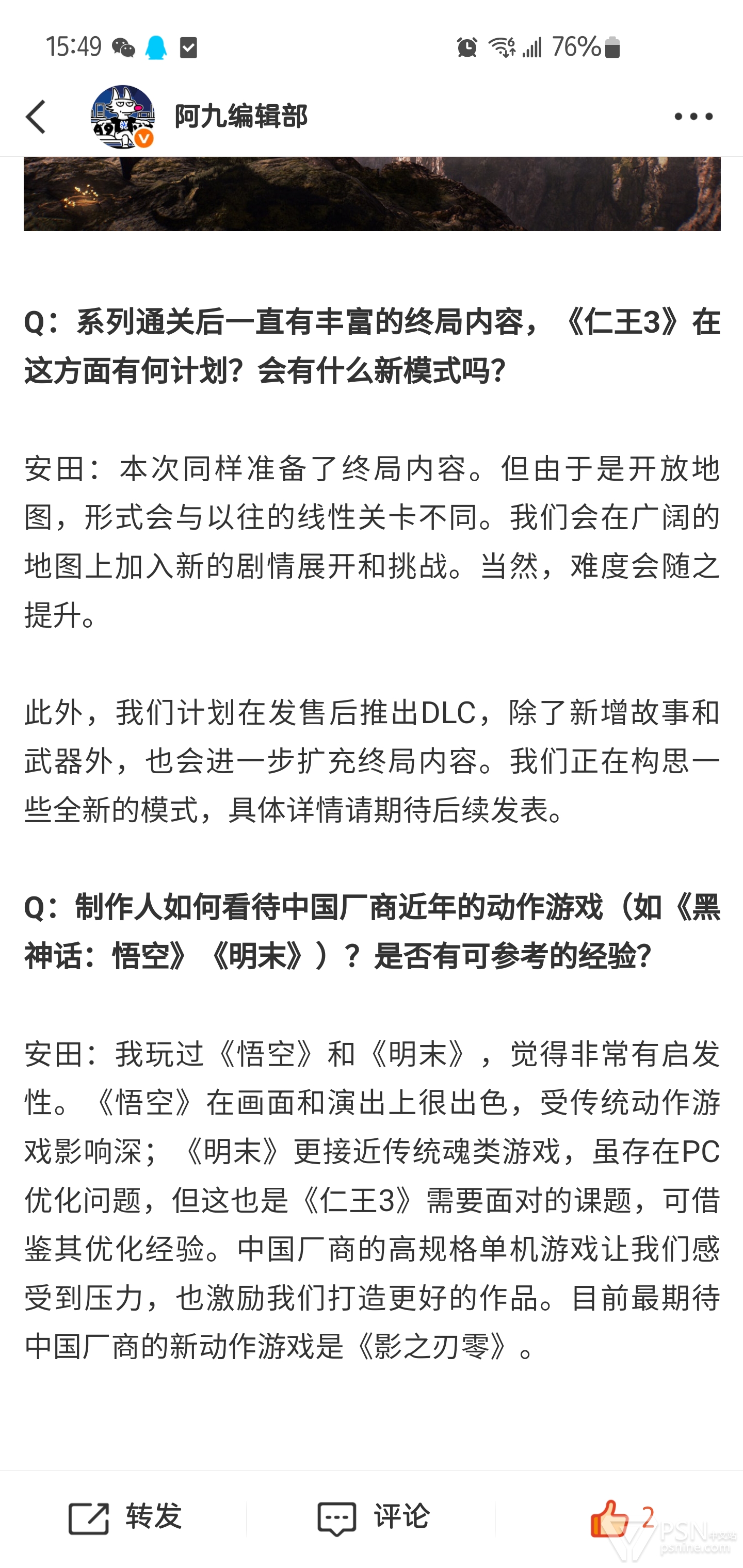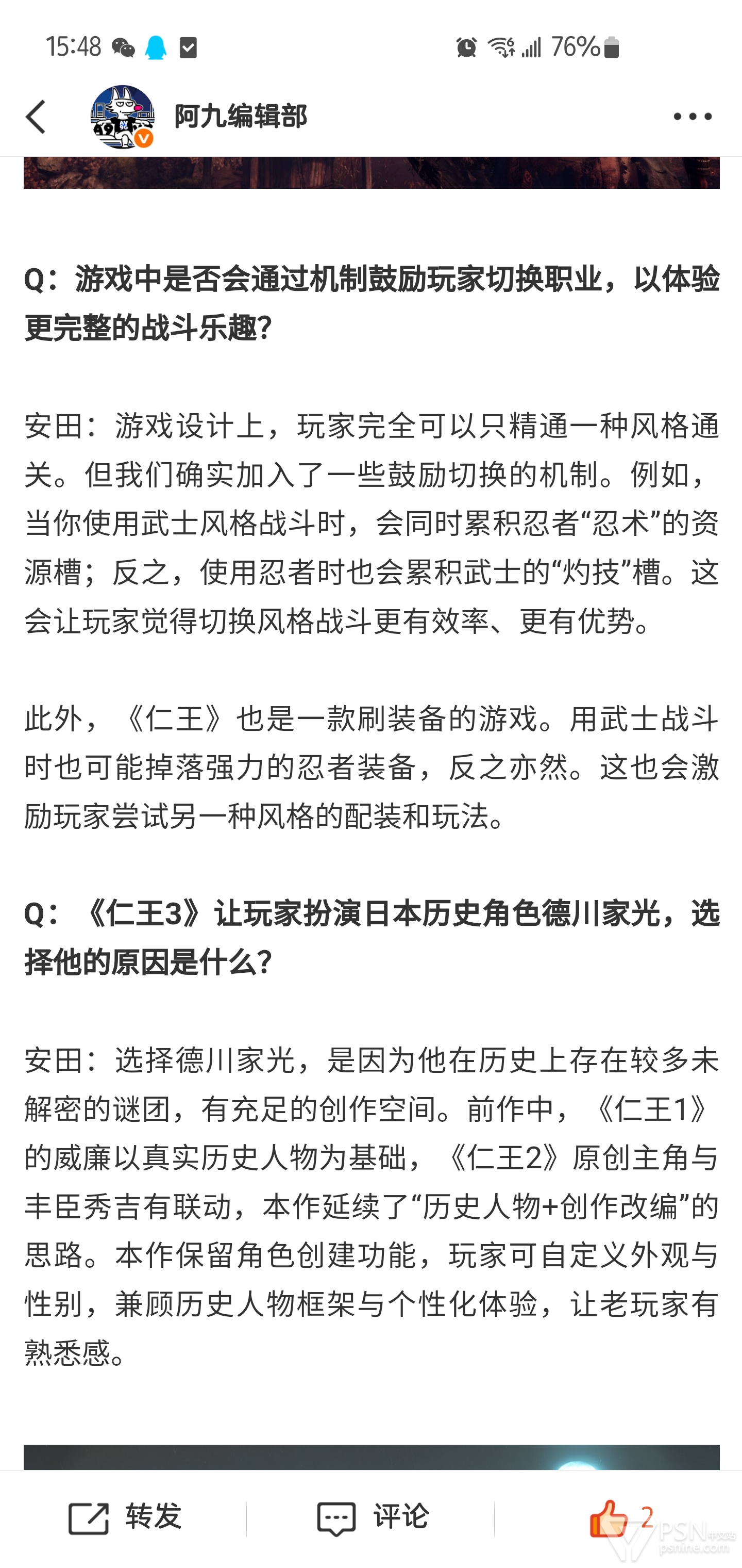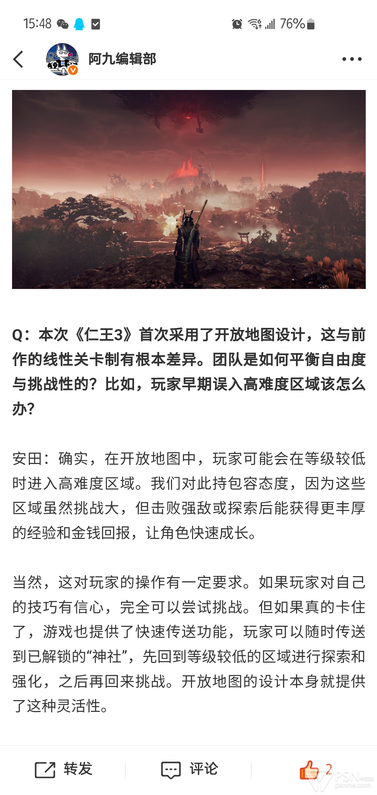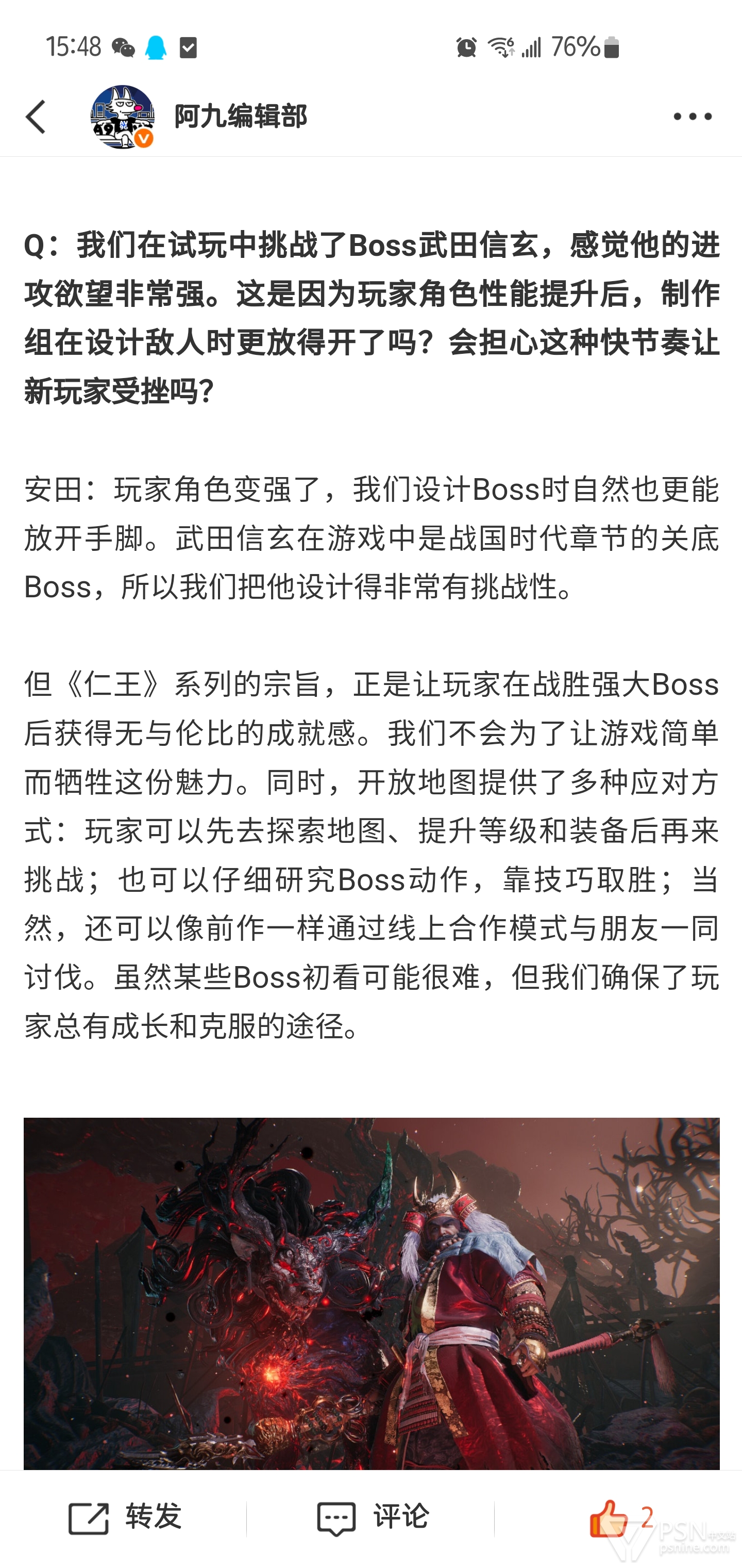光荣特库摩推出的战国题材动作角色扮演游戏《仁王3》将于2026年2月6日发售,登陆PS5/PC(Steam)平台。在东京电玩展举办期间,a9vg有幸采访了负责《仁王3》开发的Team NINJA的品牌长安田文彦先生。请他就游戏从开放地图、双职业系统、Boss设计理念以及开发经验汲取等问题进行了解答。以下为采访详情: