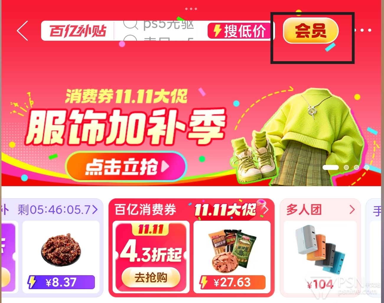 拼多多有便宜的ps5了 不过需要百亿补贴会员v3同时会员页面还需要双11专用券(图1-2)