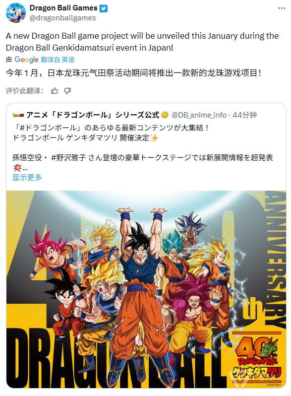 万代南梦宫预告,将在2026年1月25日于日本千叶幕张展览馆举办的“龙珠元气弹祭”上公布一项全新的《龙珠》游戏企划。
