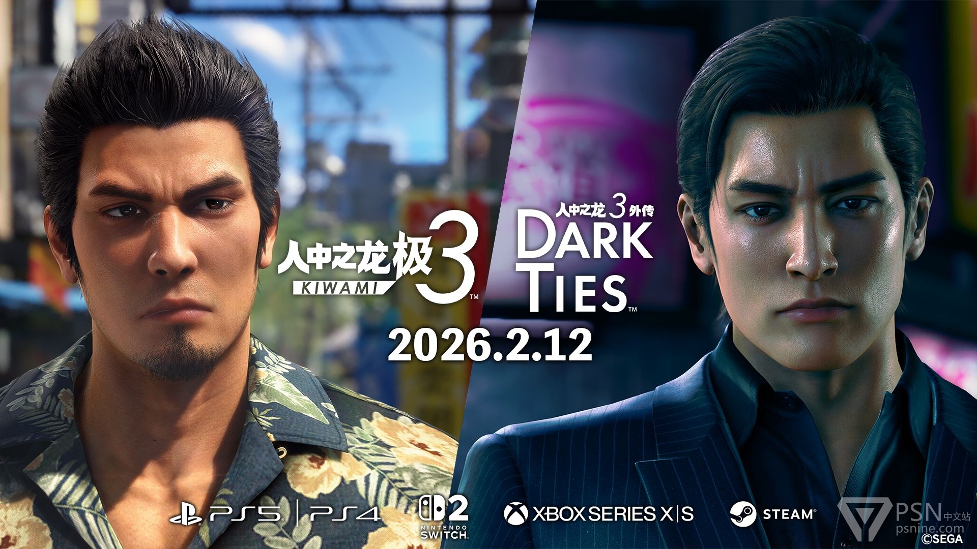 《人中之龙 极3 / 人中之龙 3外传 Dark Ties》将于2026年2月12日发售,登陆PS4、PS5、Switch2、Xbox、Steam平台,支持中文语音和简体中文字幕。欢迎预约&加入心愿单!!