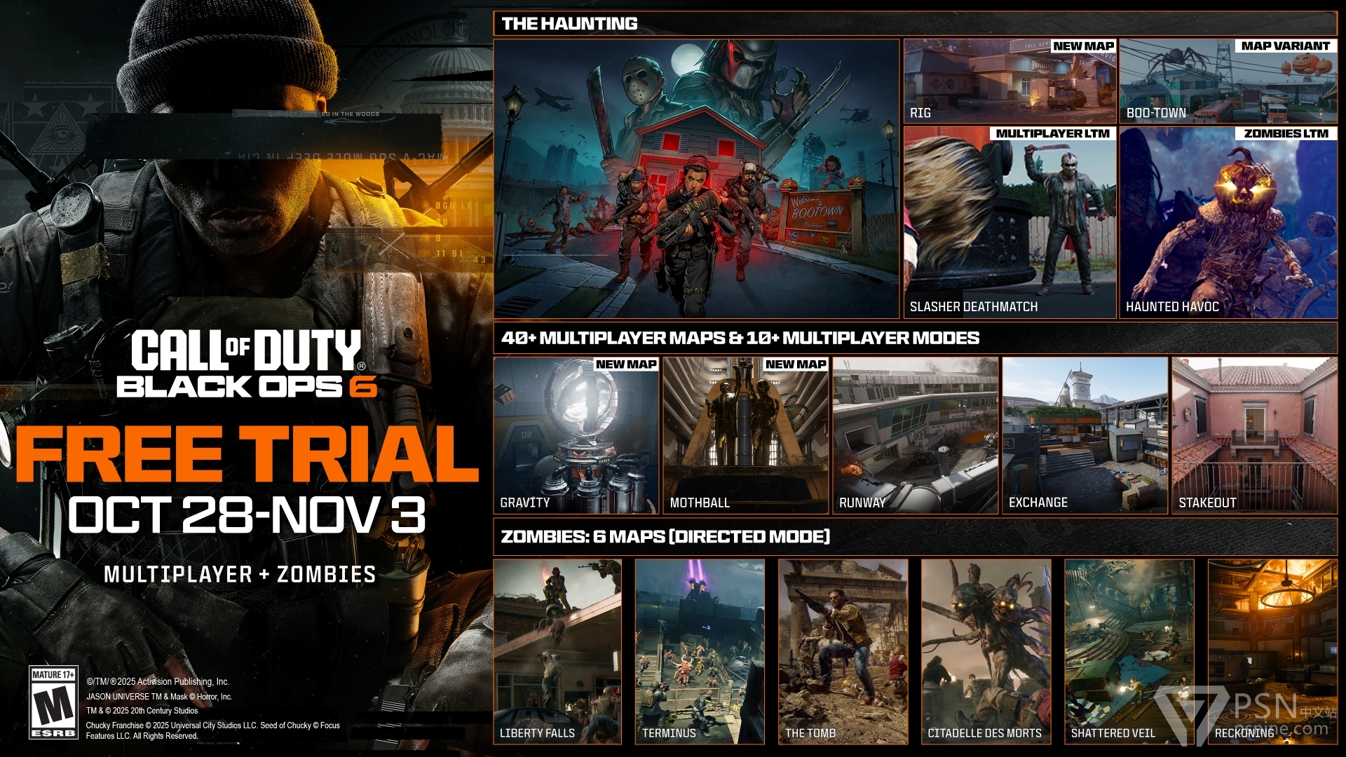 《使命召唤:黑色行动6》将于北京时间2025年10月29日-11月4日举行免费游玩活动,活动期间玩家可免费畅享多人模式和僵尸模式的全部内容——包括第6赛季新增的地图、模式及限时活动。