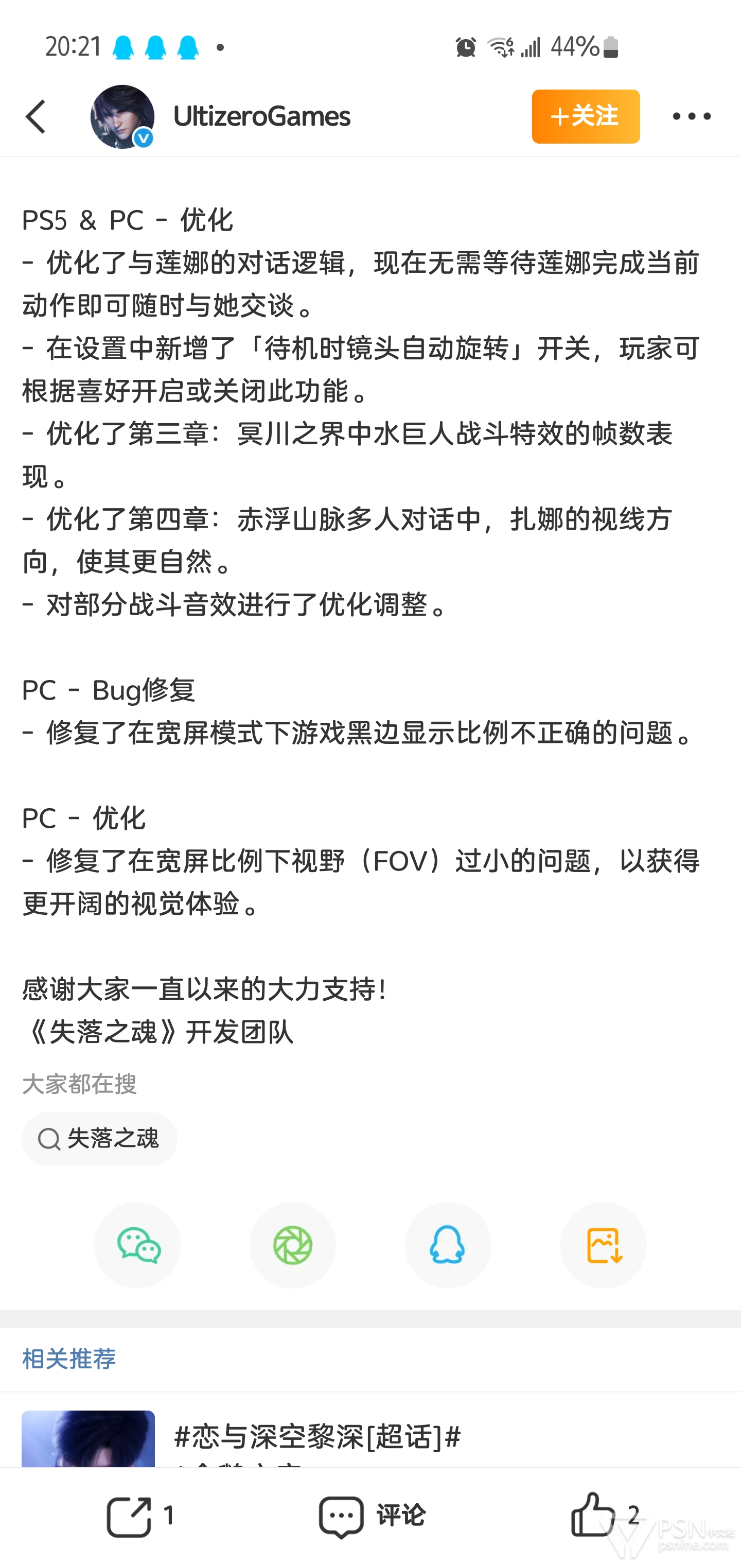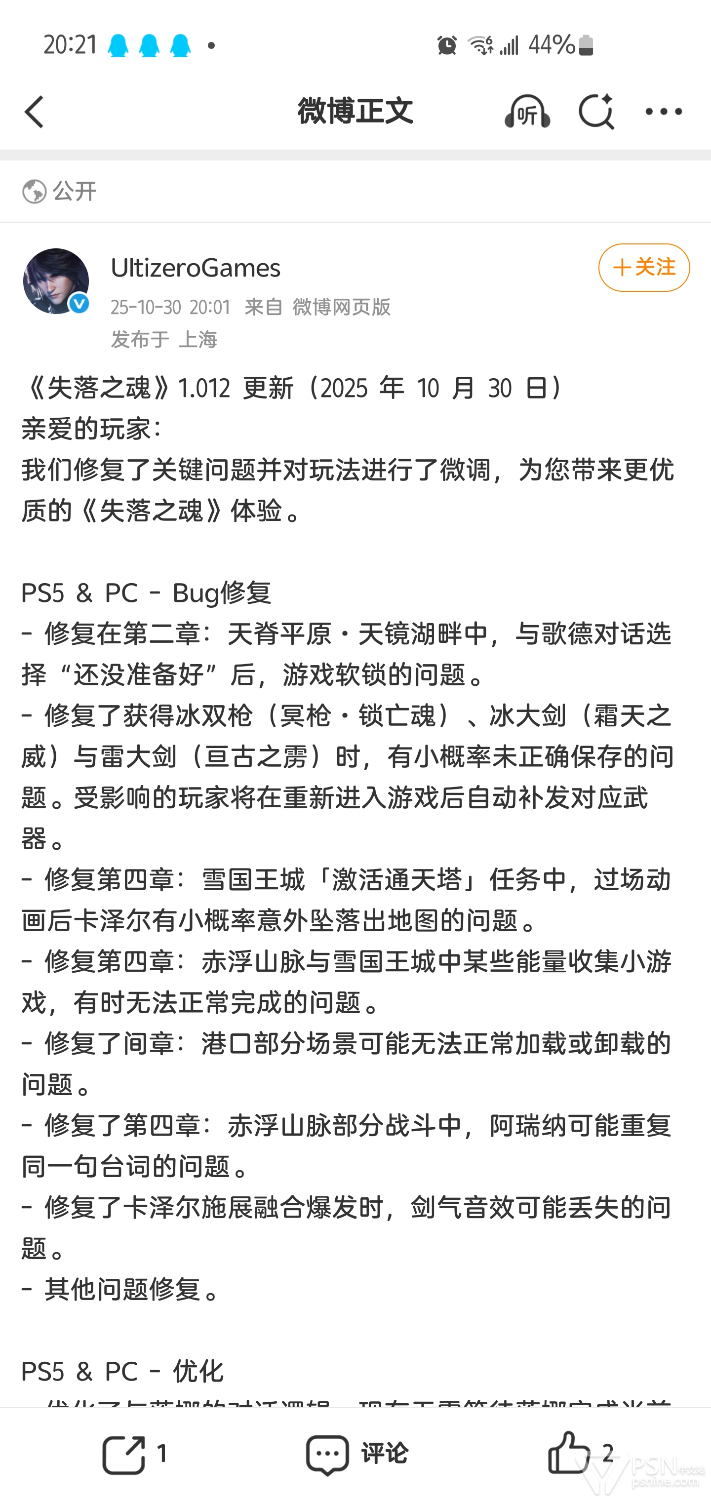 修复了关键问题并对玩法进行了微调,为玩家带来更优质的《失落之魂》体验。