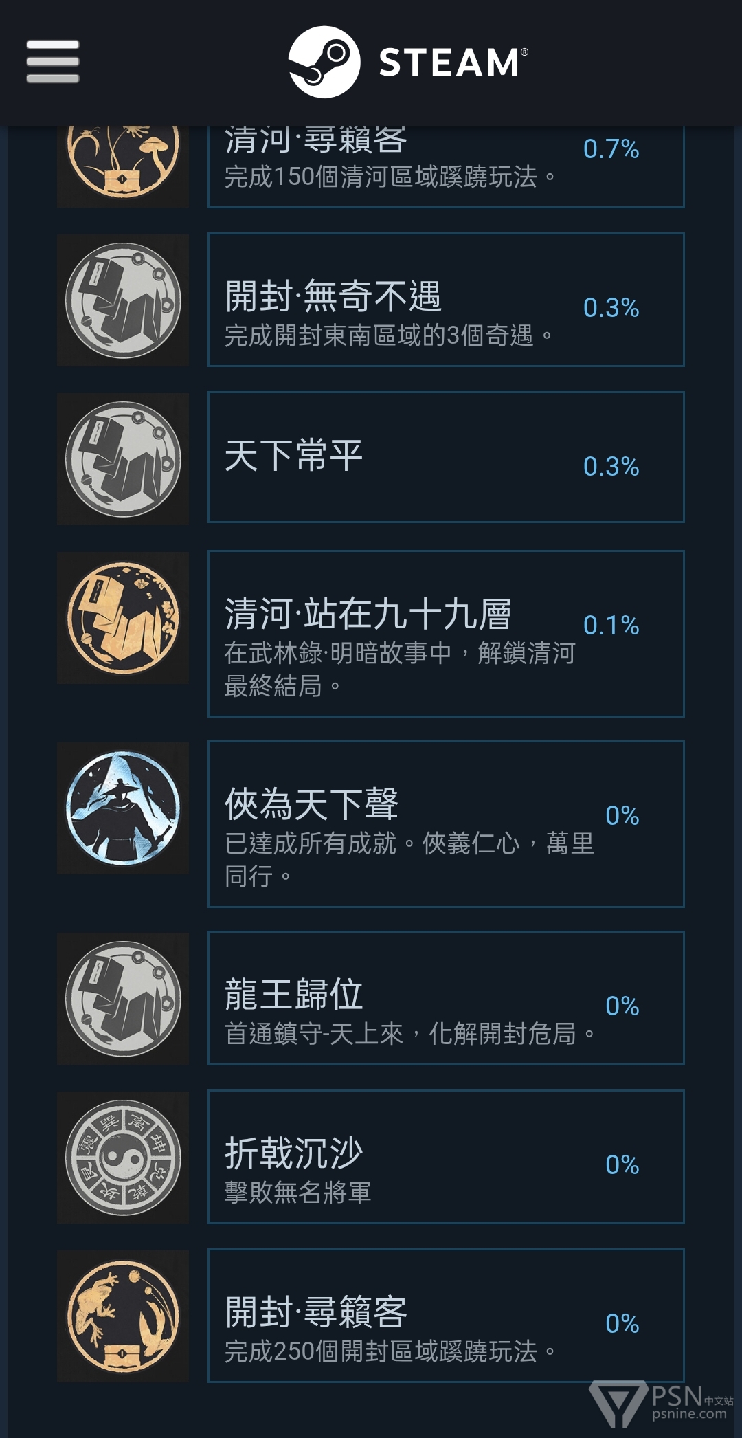 目前燕云无论PS还是Steam都无法拿到白金/全成就,需要官方后续更新版本解锁地图;然而今早就有个开挂秒白的(未解锁内容相关成就Steam上达成率是0,可以排除是通过PC端同步拿的奖杯),看评论区还是个惯犯