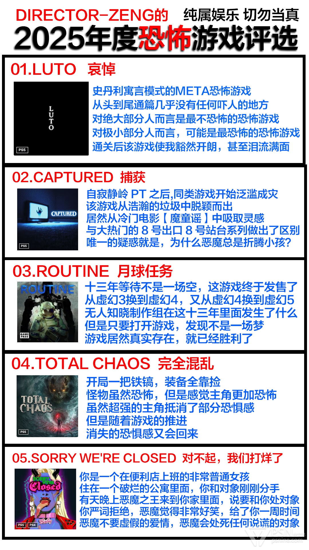 我做了个个人向2025年年度恐怖游戏TOP-5排行榜,纯属娱乐,仅供参考,切勿当真。