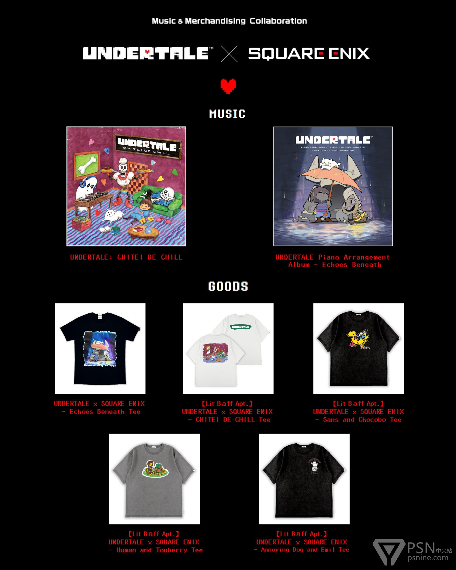 《传说之下》(UNDERTALE)×SQEX联动第二弹详情公开,包括由下村阳子 担任制作人的钢琴改编专辑《UNDERTALE Piano Arrangement Album – Echoes Beneath》,以及联动T恤。