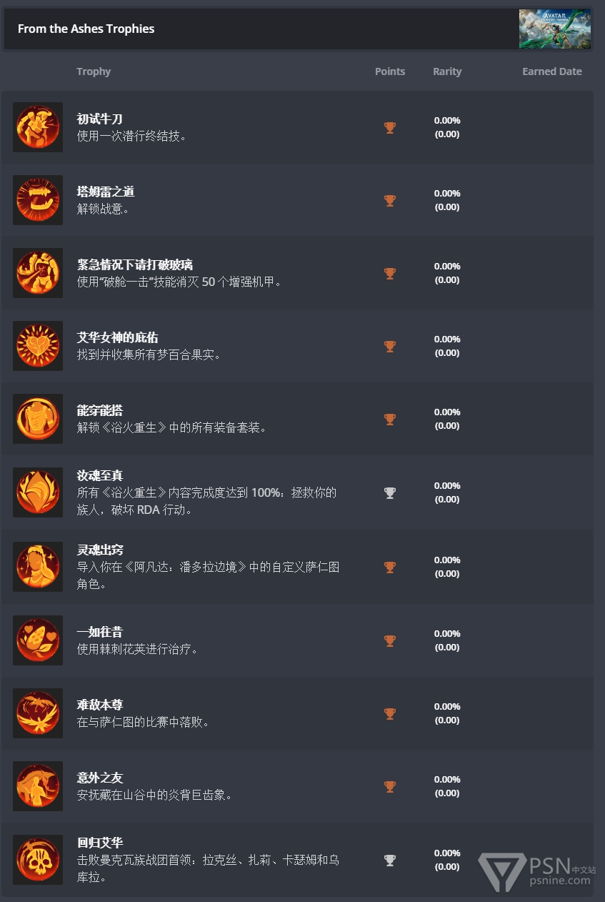 《阿凡达:潘多拉边境》DLC「浴火重生」将于2025年12月19日发售,该DLC带来了2银9铜共11个新奖杯。
