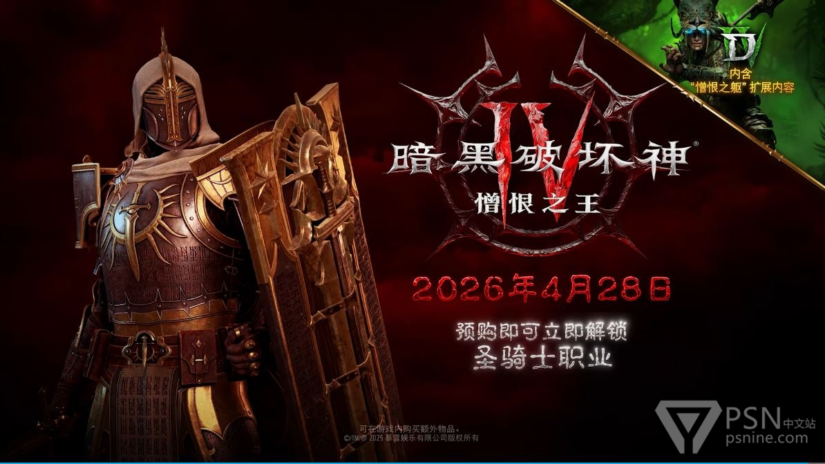 《暗黑破坏神4》扩展内容「憎恨之王」将于2026年4月28日发售,视频为宣传片。