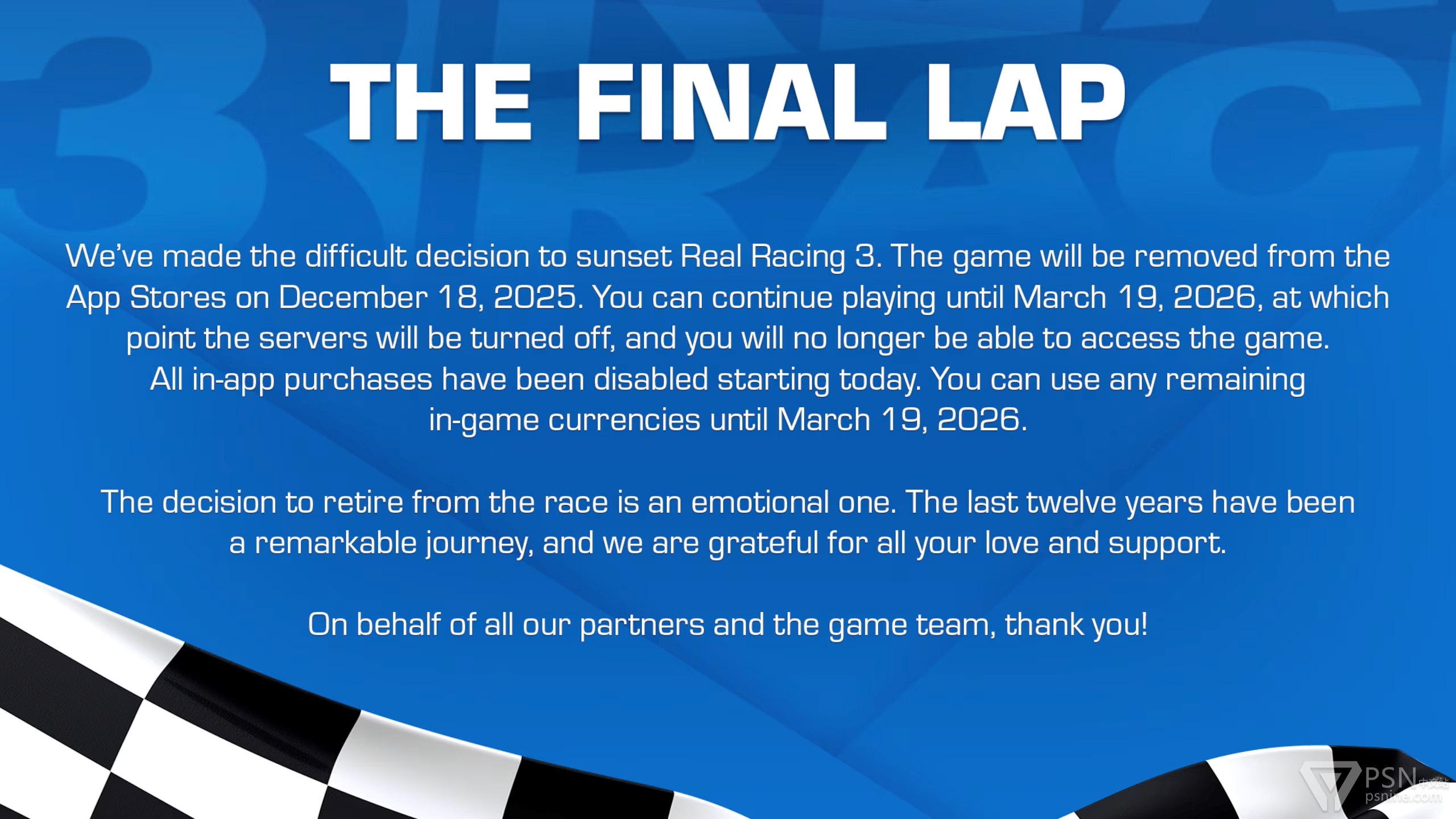 《真实赛车3》将于2026年3月19日终止运营,届时游戏将无法再游玩。