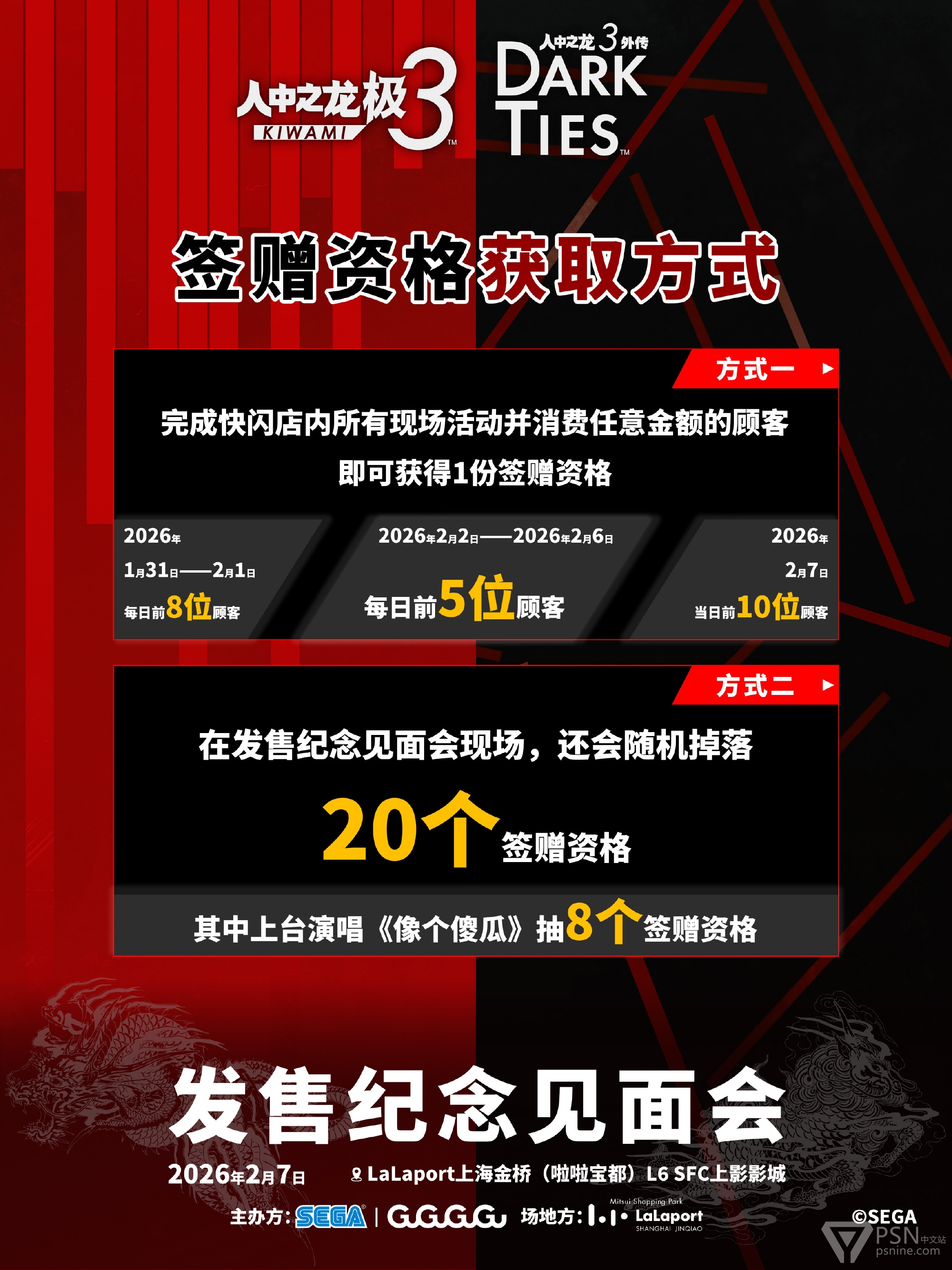 《人中之龙 极3 / 人中之龙3外传 Dark Ties》发售纪念见面会将于2月7日空降LaLaport上海金桥!