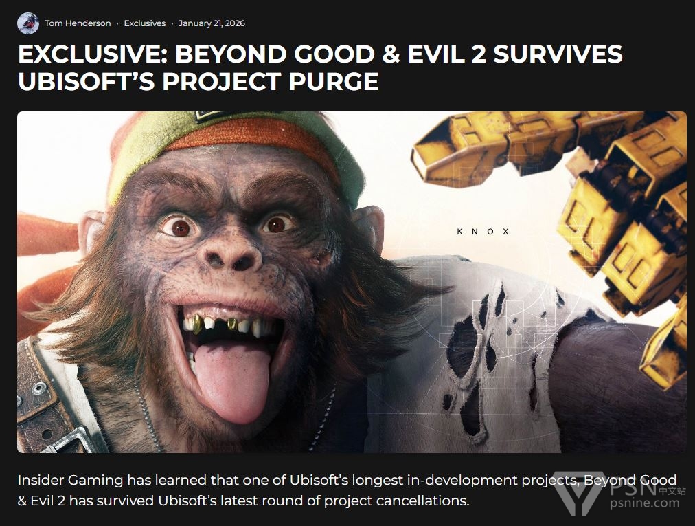 育碧在今天进行了“大清洗”,取消了包括《波斯王子:时之砂-重制版》在内的6款游戏的开发——但据汤姆·亨德森报道:《超越善恶2》不在取消之列,本作仍在积极开发中。
