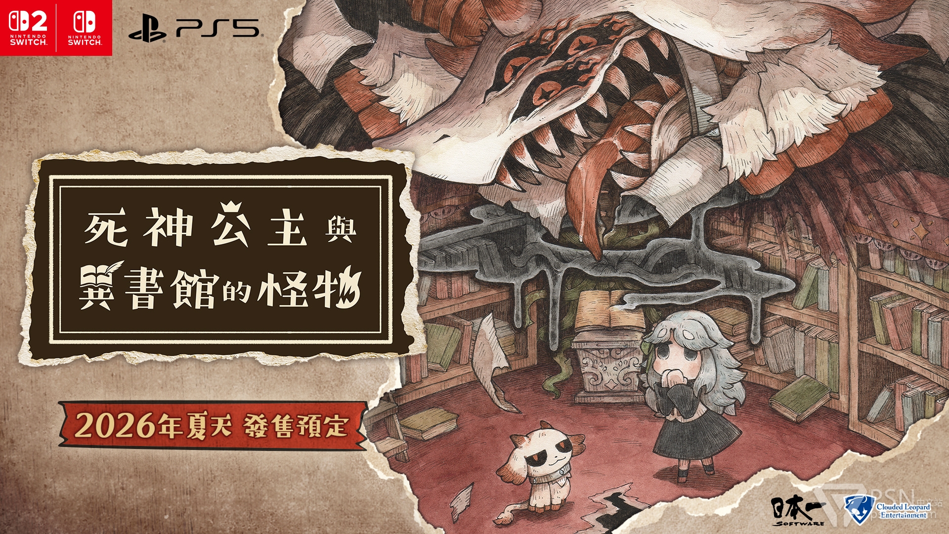 云豹娱乐今日公布,由 Nippon Ichi Software 打造的异色童话冒险作品《死神公主与异书馆的怪物》繁体中文版确定将于 2026 年夏季 登陆 Nintendo Switch 2、Nintendo Switch 与 PlayStation 5 平台。