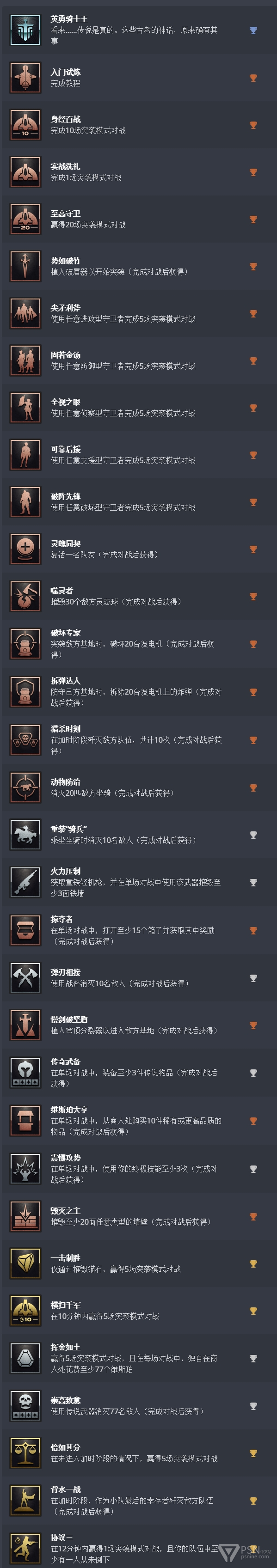 PVP团队射击游戏《Highguard》的PS5版奖杯已出炉:1白金、5金、7银、20铜,共33个奖杯。