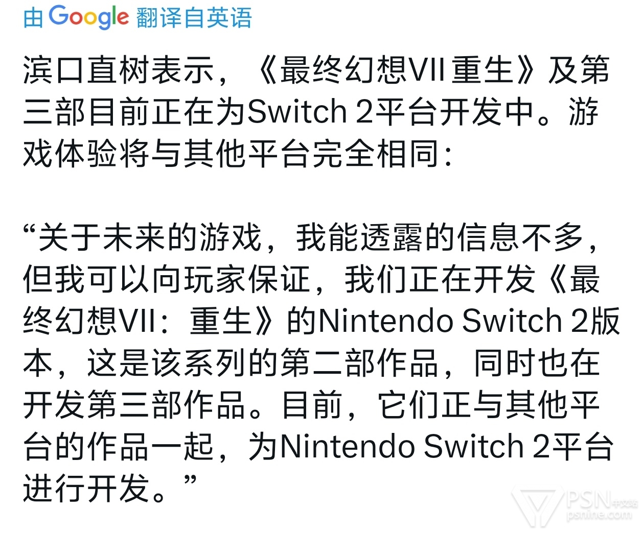 NS2版最终幻想重生和第三部同步开发中,看来SE真要全平台同步了