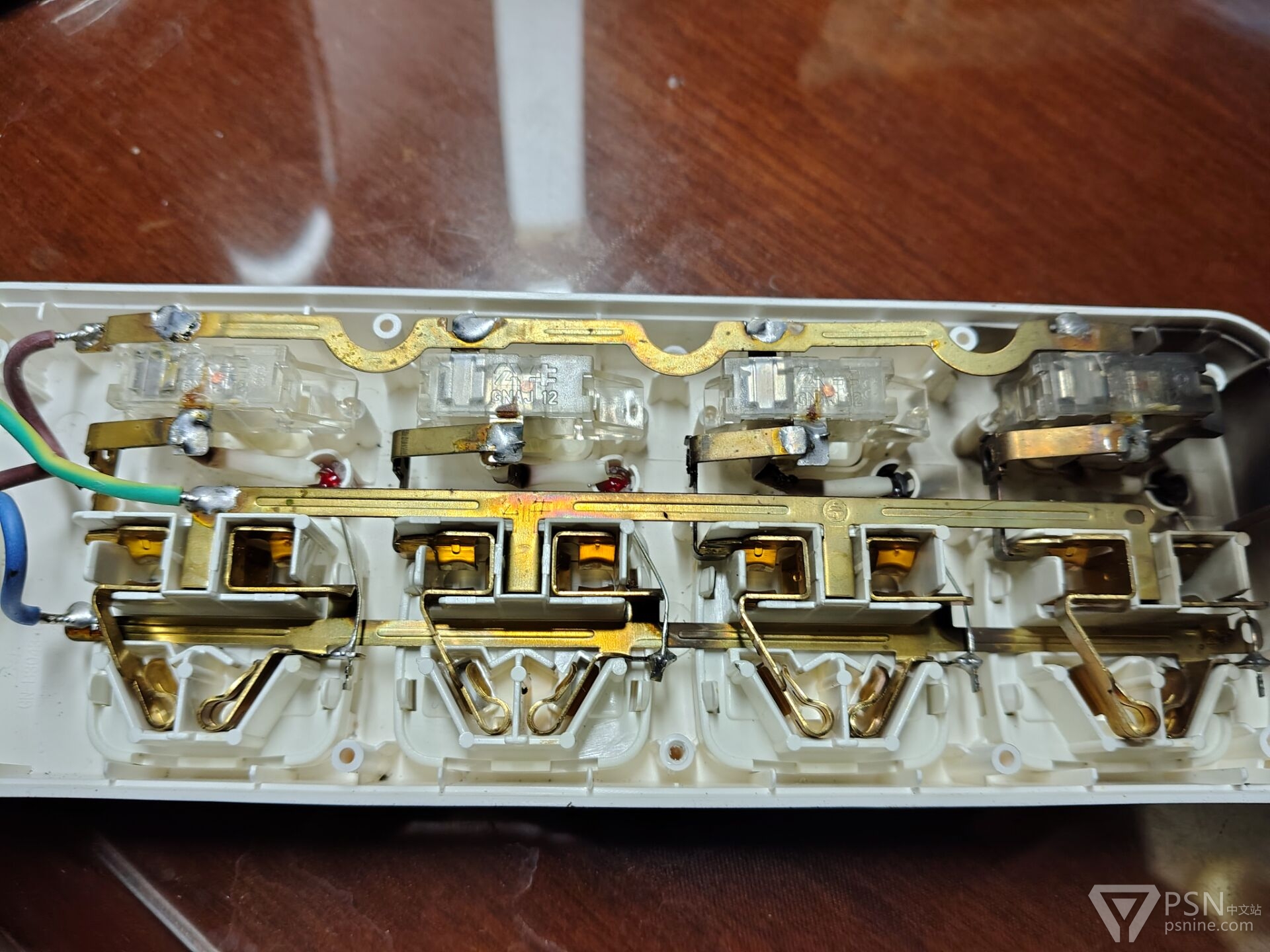 炸得最黑的是最早炸的,插着的是pstv。按下独立分控开关,然后插座里电光一阵闪烁,吓得我不敢再去关。