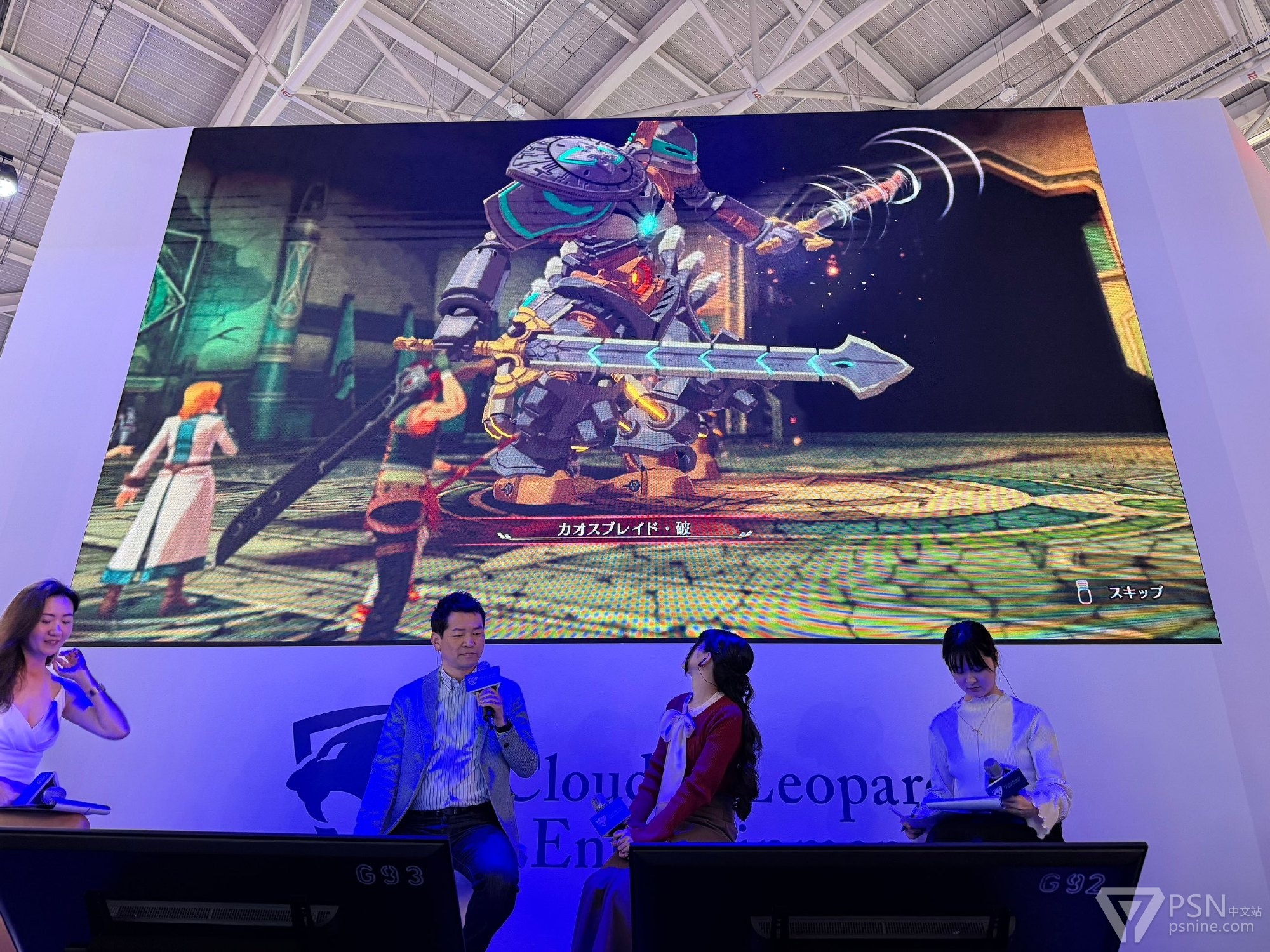 睽违两年再度来台的NIHON FALCOM 社长近藤先生,与于《空之轨迹 the 1st》中为「缇妲‧拉赛尔」献声的饭田光小姐连袂出席云豹娱乐舞台活动。