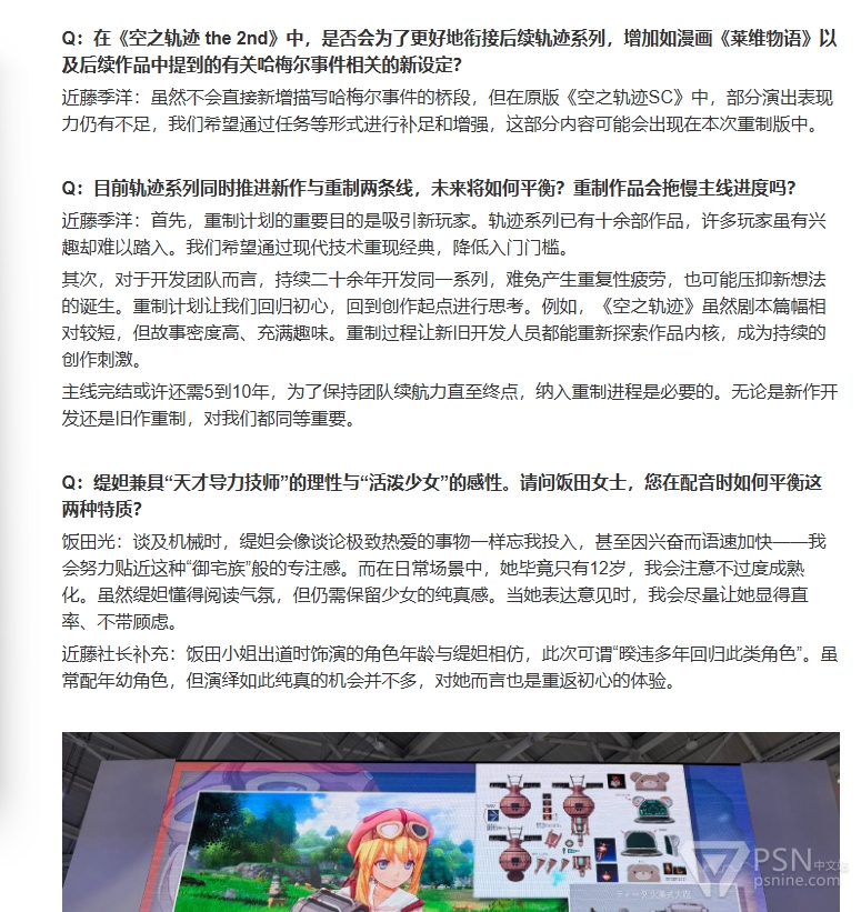Q:《空之轨迹 the 1st》重制耗时多久?有了经验后,本次重制策略会否不同?
