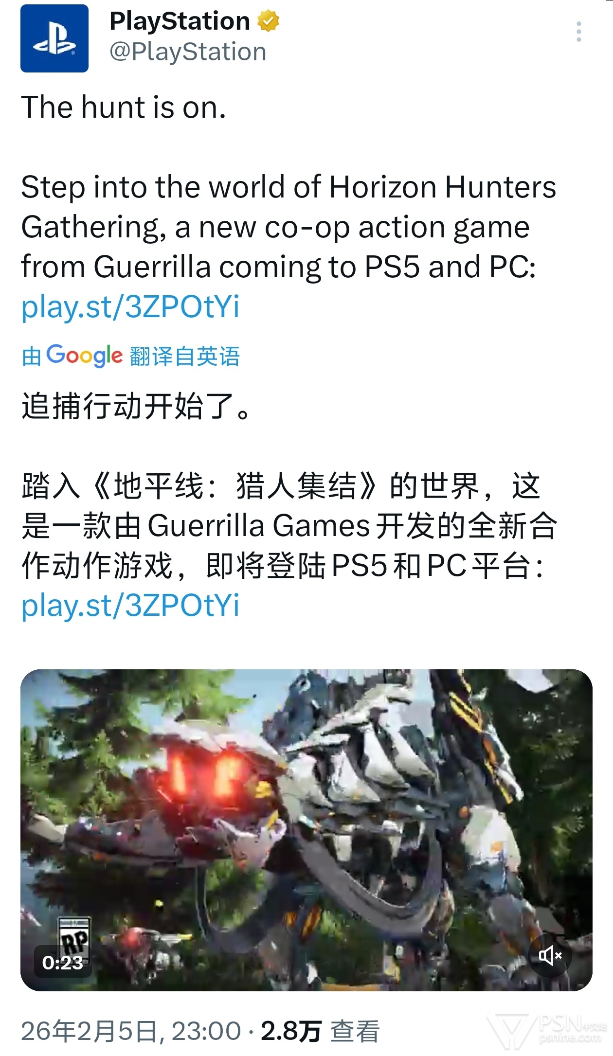 《地平线:猎人集结》是一款合作动作游戏(由 Guerrilla Games 开发,PS5 和 PC 平台),最多支持三名玩家组队扮演英勇的猎人,保护一个受到致命机器威胁的世界。战斗策略性强,反应迅速,高度考验玩家的技巧,在《地平线》系列游戏精准的战术基础上,进一步强化了团队合作的乐趣。