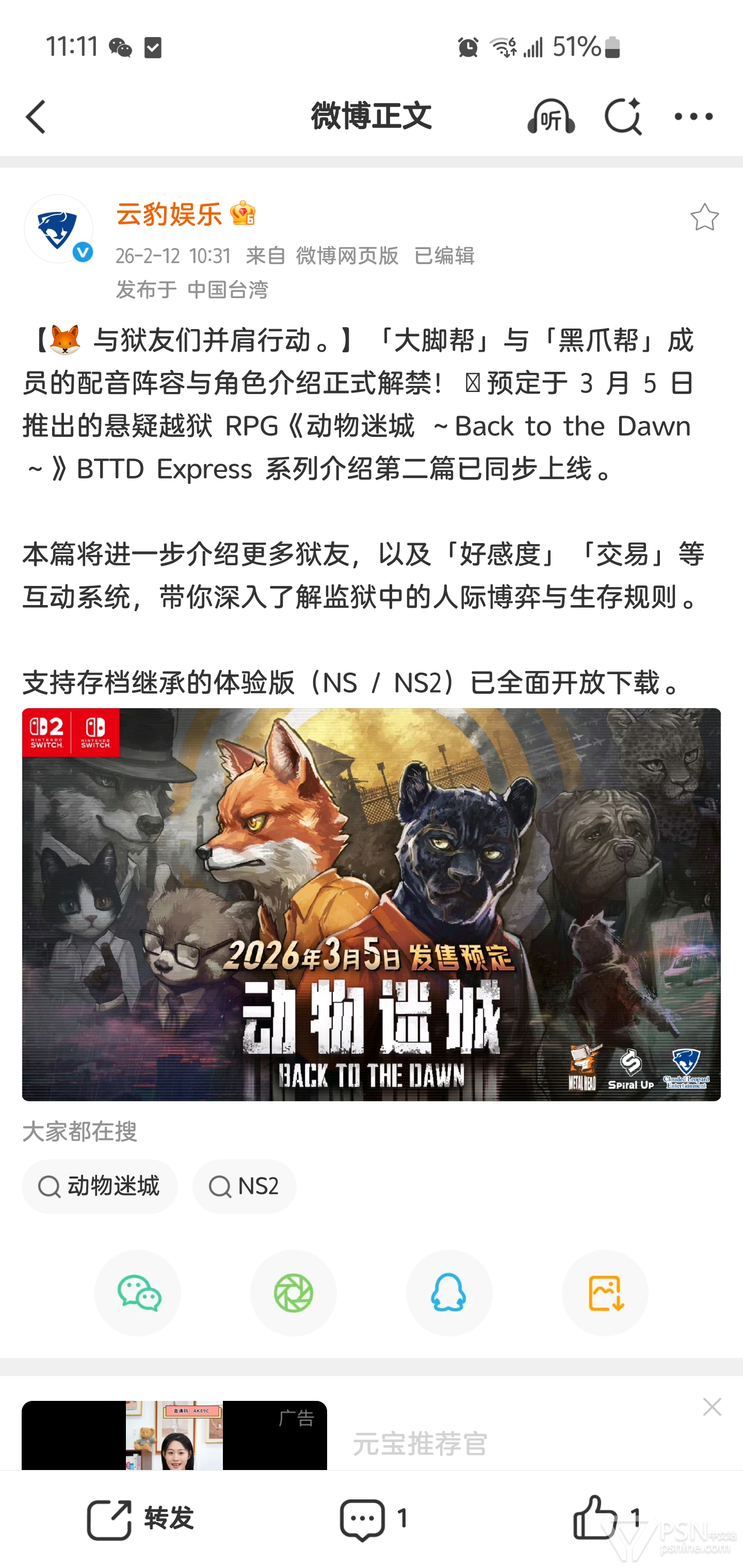 云豹娱乐刚刚发布了三条信息
