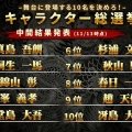 《如龙》舞台剧登场角色公众投票公开半程结果,如下图。最终票选前10名的角色将会在舞台剧中登场亮相。