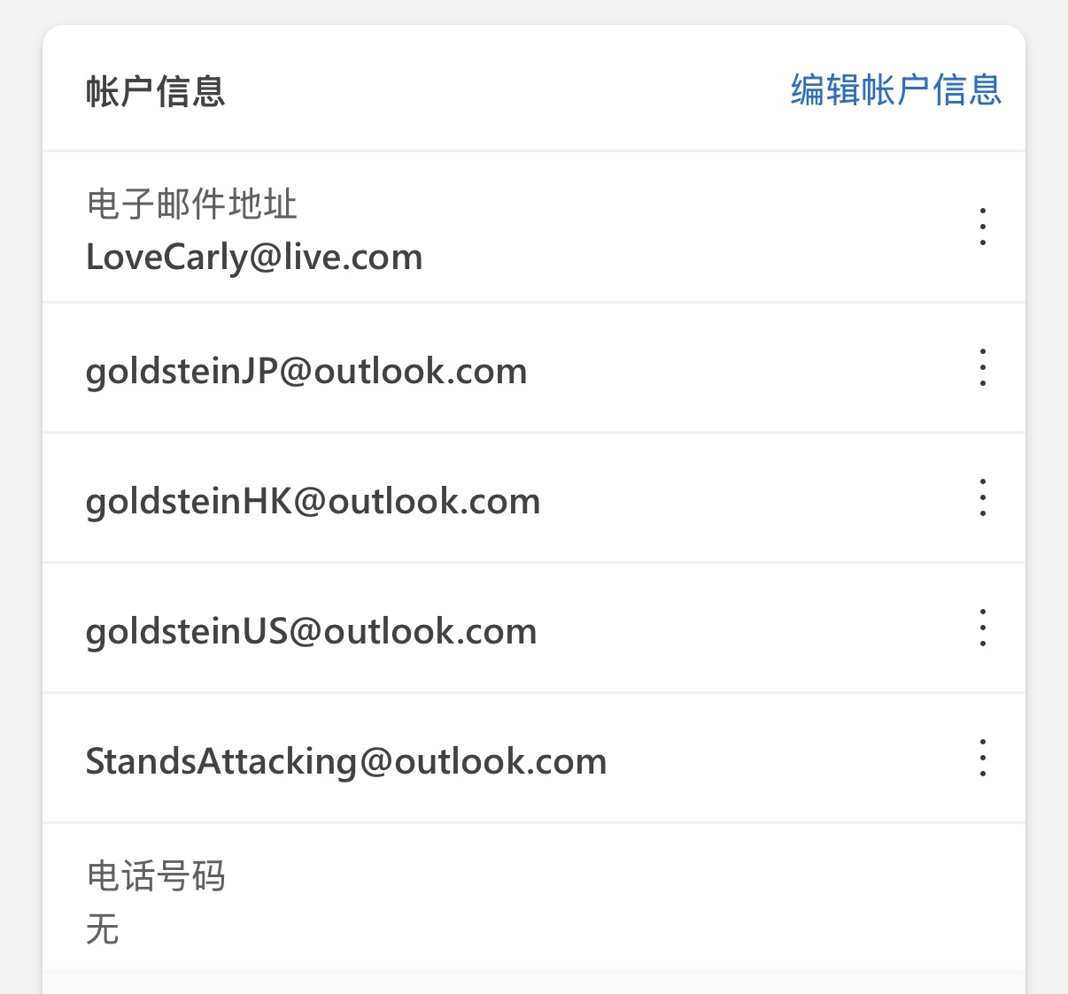 我只能说Outlook + 子邮永远是多账号的神,统一规范命名给PSN、Apple等各种分区使用,全部邮件由一个主邮接收,至于安全性,风控封号全都不存在,验证器一开谁都没办法,而且只要是用Windows或者Xbox等微软产品都会有一个邮箱,更不存在额外成本。