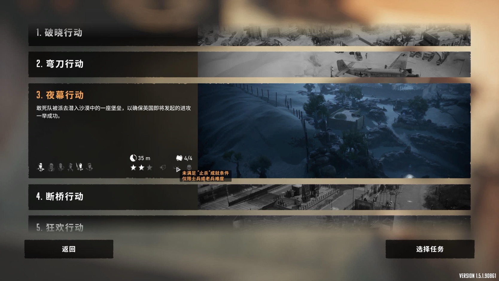 于是我又通了一遍第三关,最后3个巡逻的德军没有电死,但还是这关止杀完成