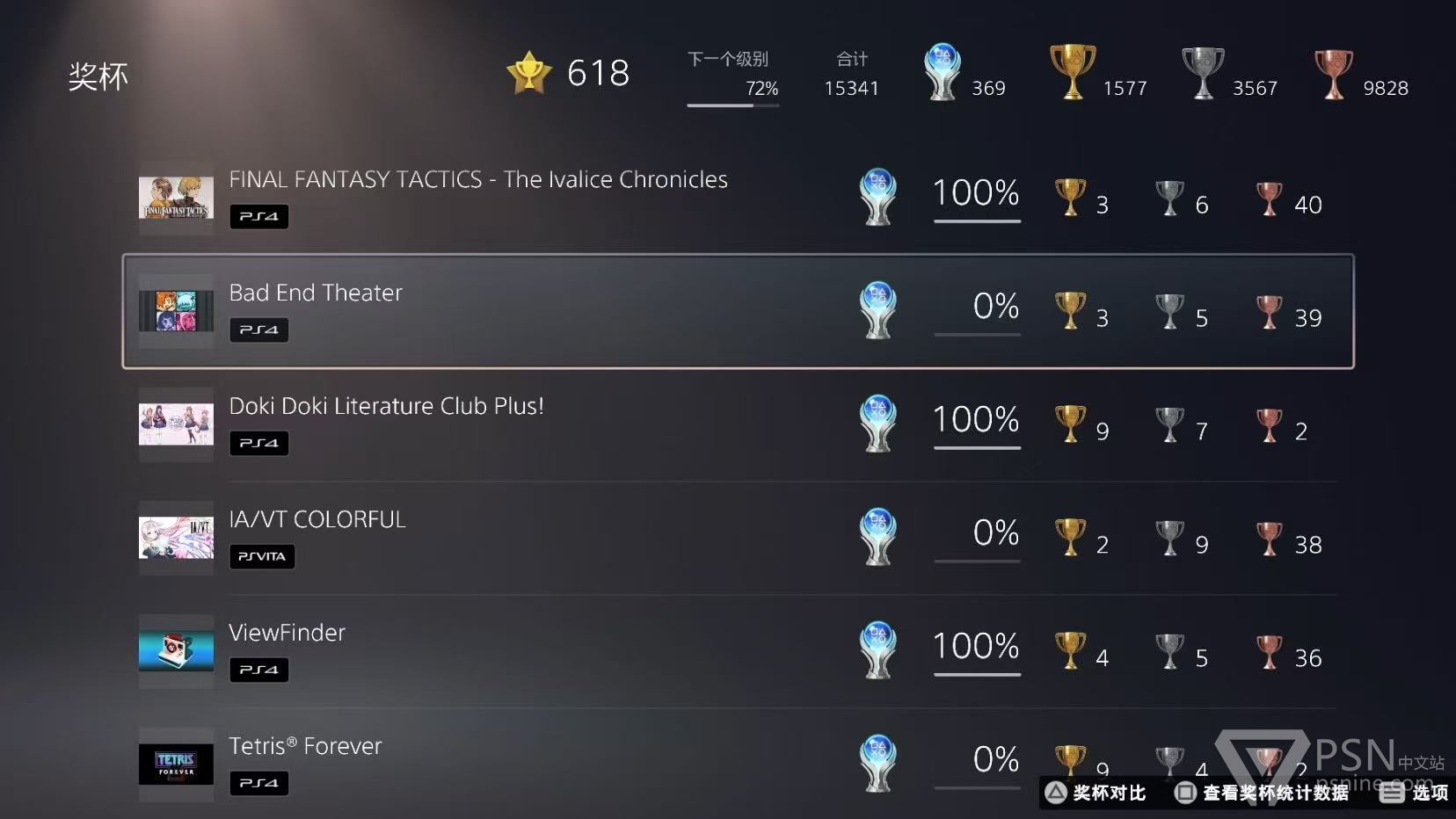 奖杯列表出现了0%的白金游戏。这是什么bug