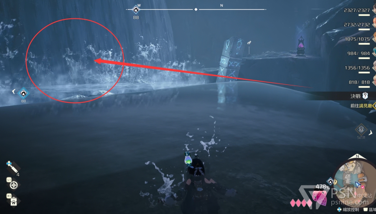 从图中瀑布位置跳下去,下去后往左边一直走就是第三个祭坛,再走进瀑布内就是第四个祭坛