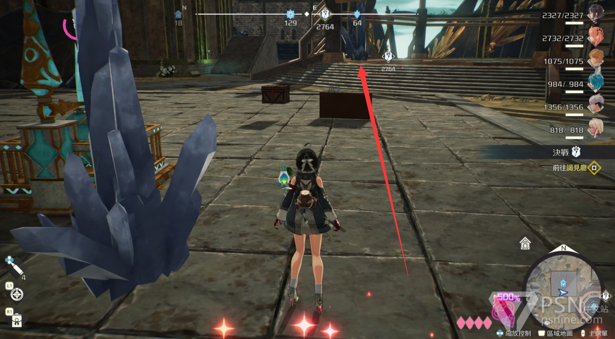 如果有DLC的话,可以在图3奥尔马地区如图所示的建置区域造玛娜间歇晶,注意旁边还得造个能量机,因为玛娜间歇晶需要消耗能量机的能量。这个地方使用玛娜间歇晶DLC可以在箭头位置刷出间歇晶,走两步就到了,非常的近。不过间歇晶刷特性还不错,刷余音断片的效率感觉远不如间歇泉,数量给的比间歇泉要少,很多时候还只会刷出来小和中余音断片,刷不出来大,也不知道是不是刷的姿势不对