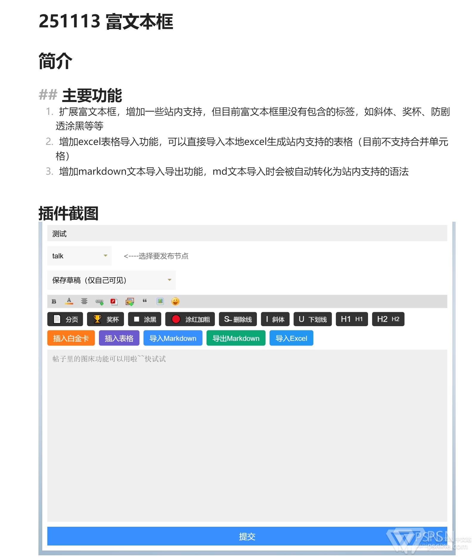 写了个P9富文本框增强插件(油猴脚本) 导入markdown功能