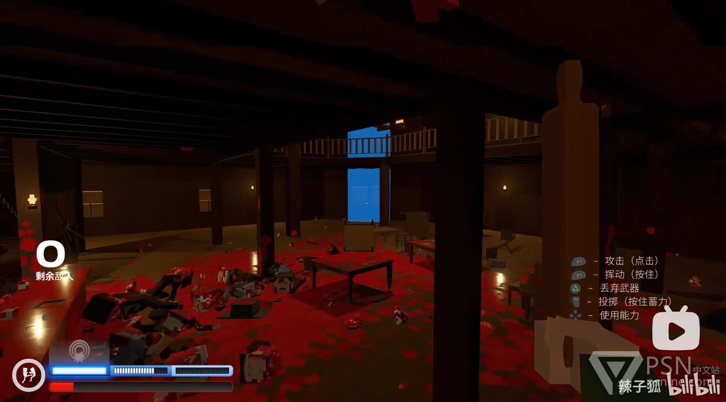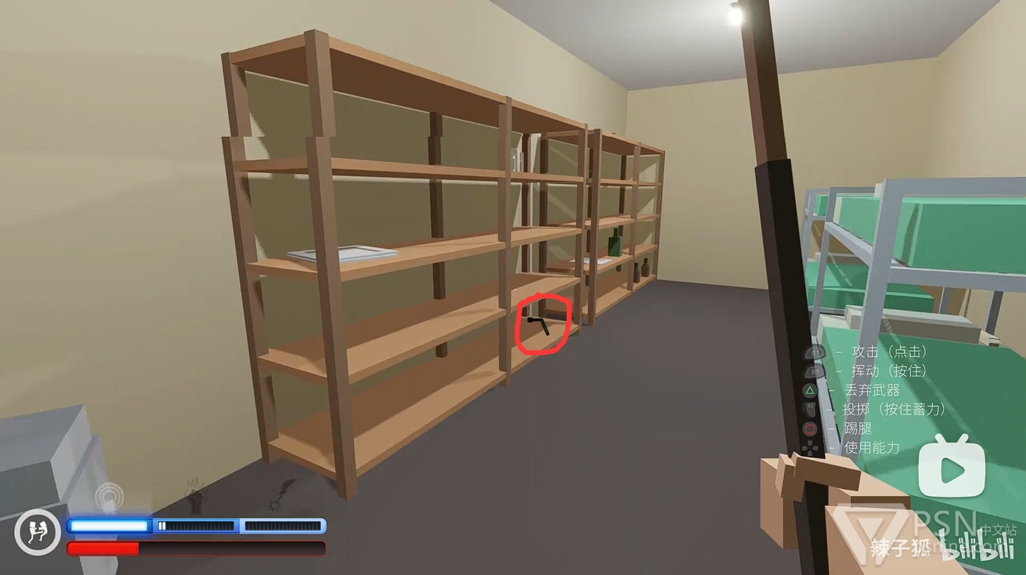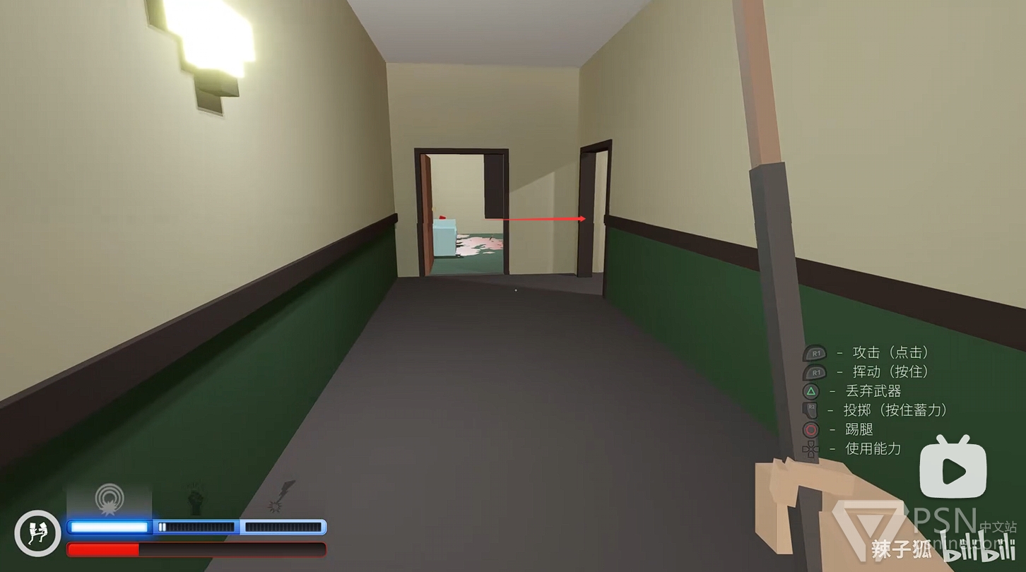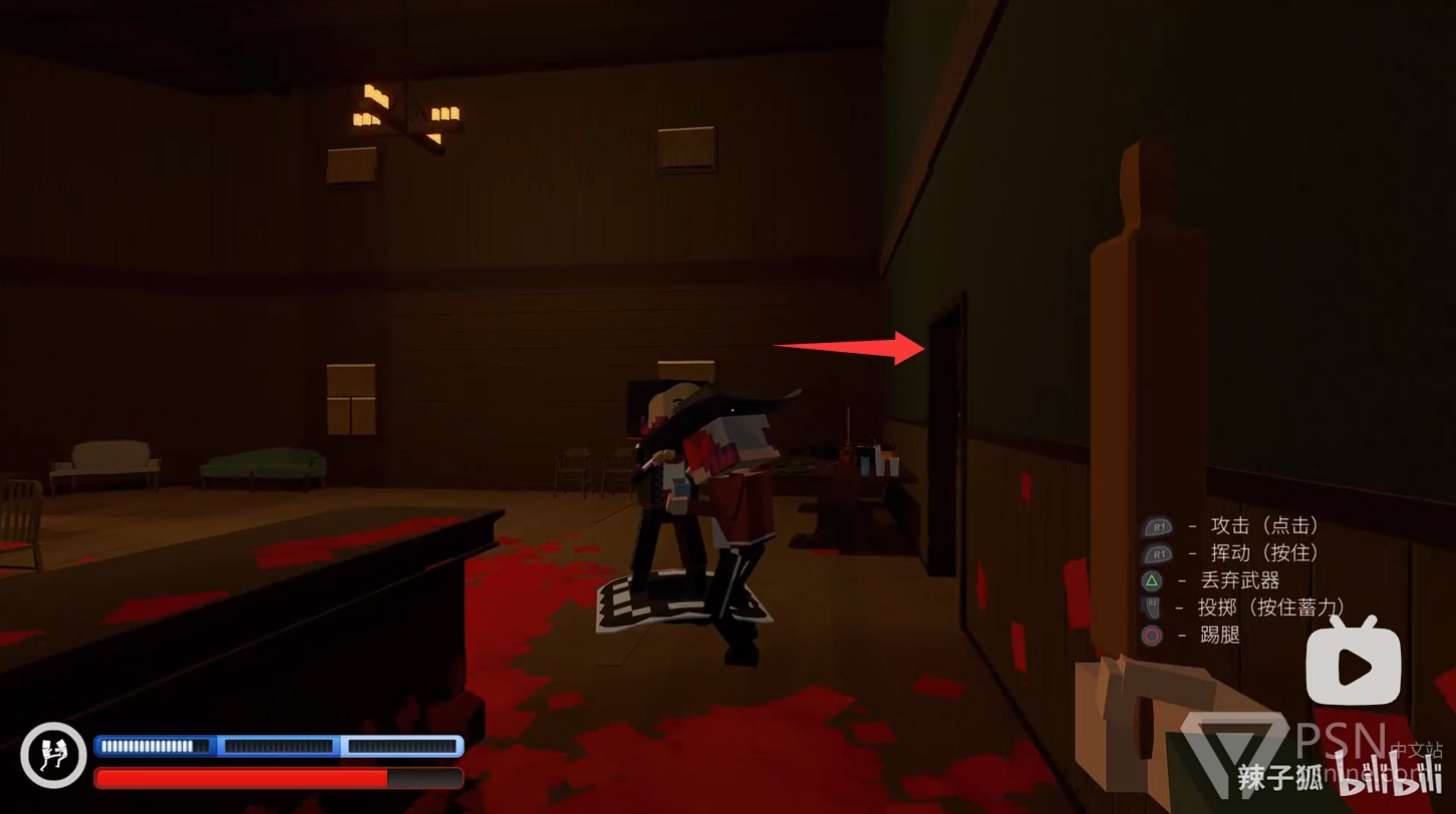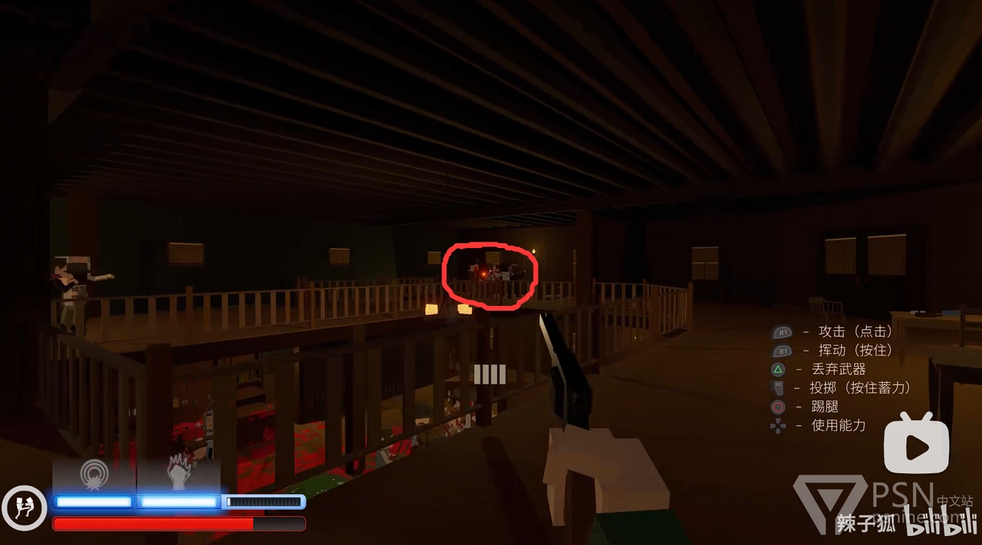 ·清理完二楼敌人后,前往二楼楼梯底下的房间拿铁棒继续清理一楼敌人,继续积攒技能条;