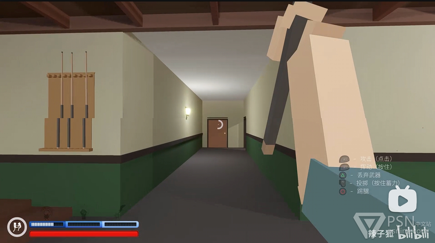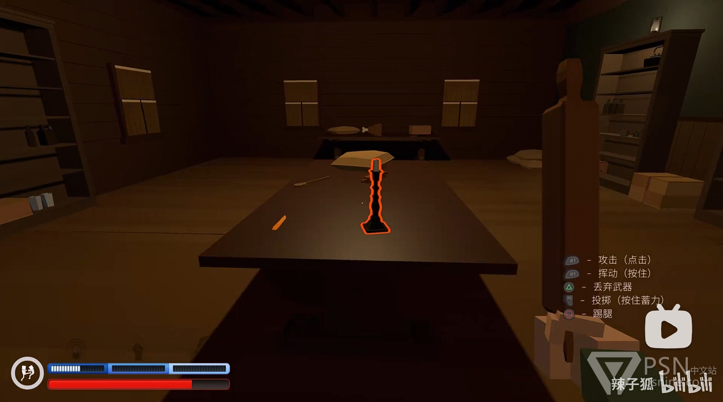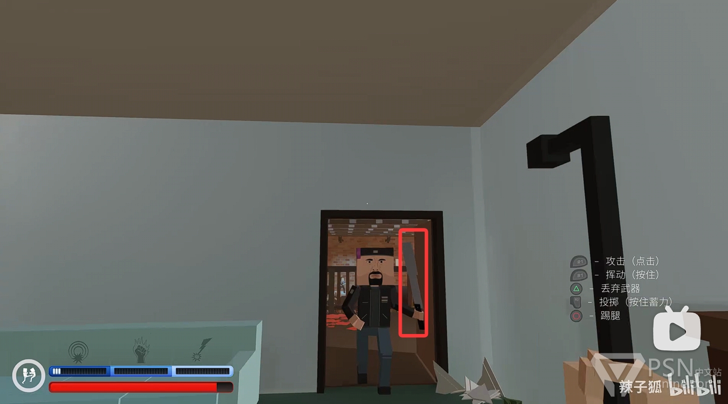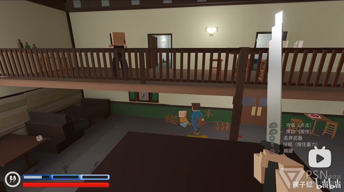 ·清理完二楼敌人后,前往二楼楼梯底下的房间拿铁棒继续清理一楼敌人,继续积攒技能条;