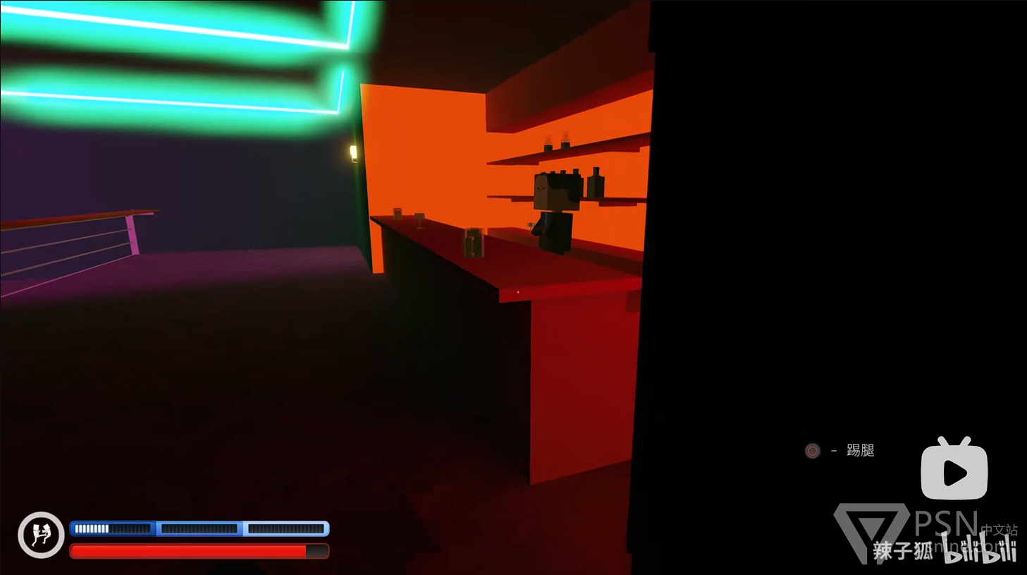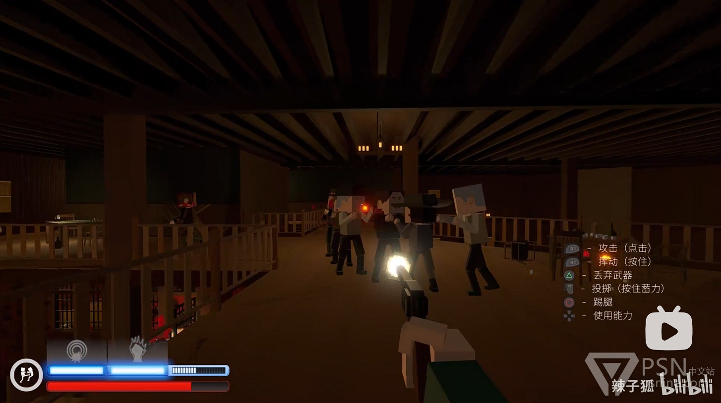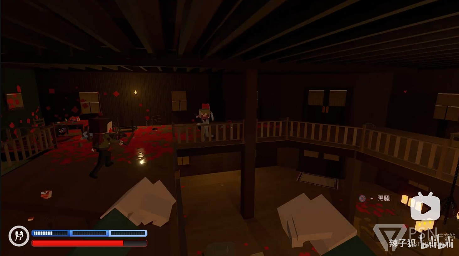 ·随后回头跳到酒吧台上方拿到水果刀,并跳到对面的二楼上击杀周围敌人;