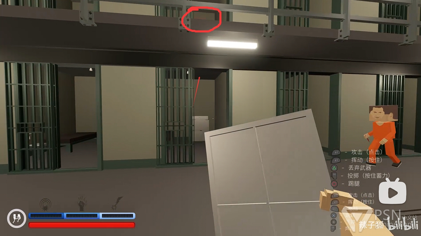 ·随后来到从右往左数的第四个监狱门口前,用餐盘瞄准楼上位置重击,透过地板攻击敌人从而解救监狱头目,获得一定数量的盟友;